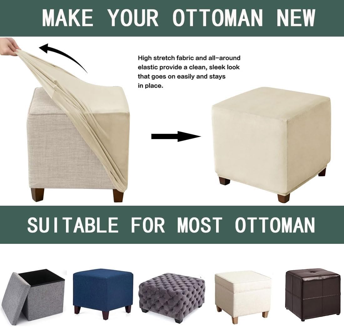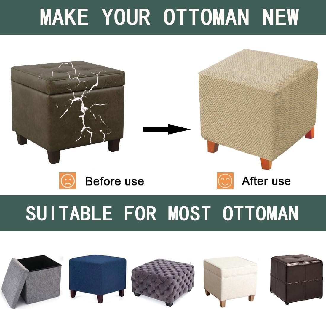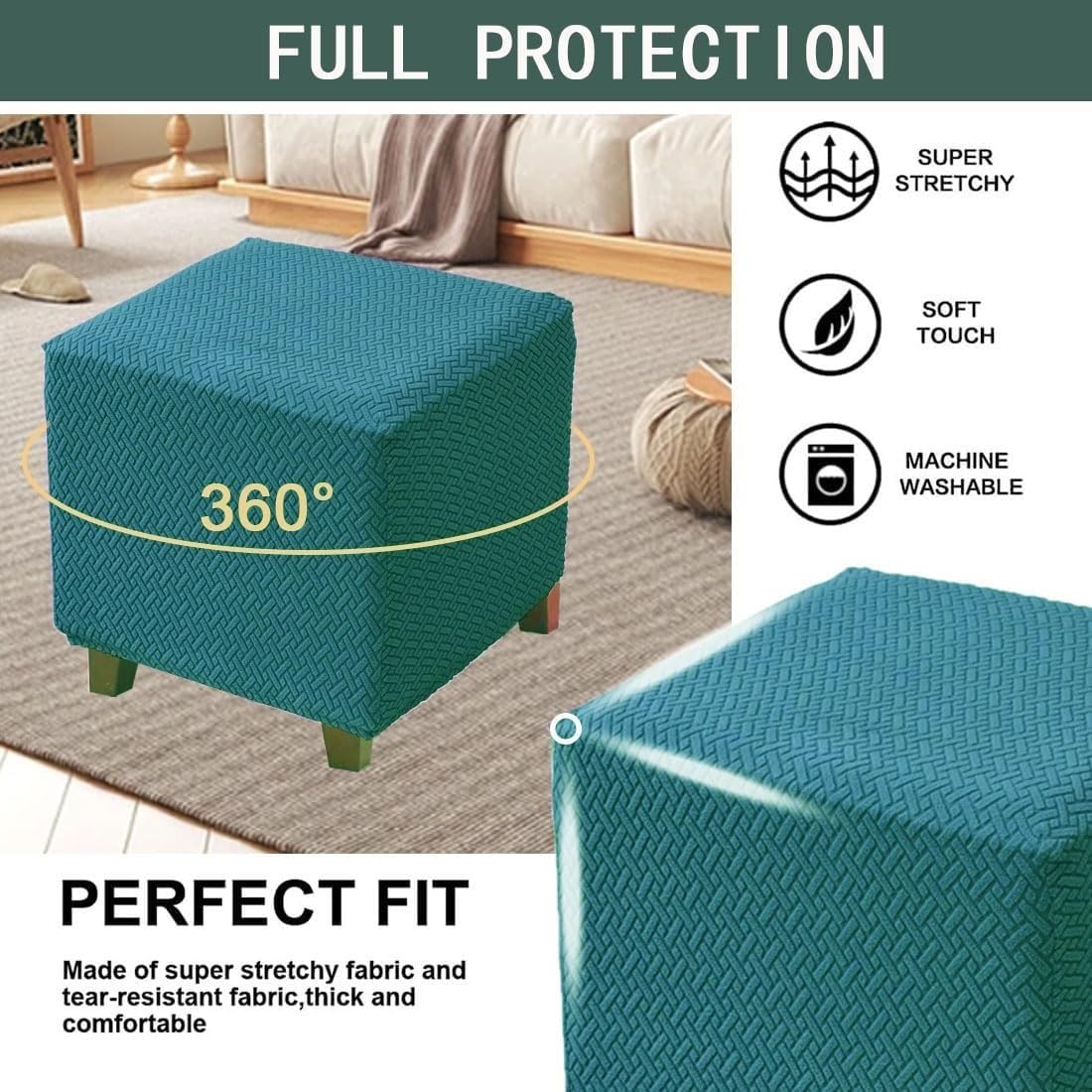 • Hockerbezug Quadratisch 60x60 Cm - Elastischer Überzug Für Ottomane & Fußhocker