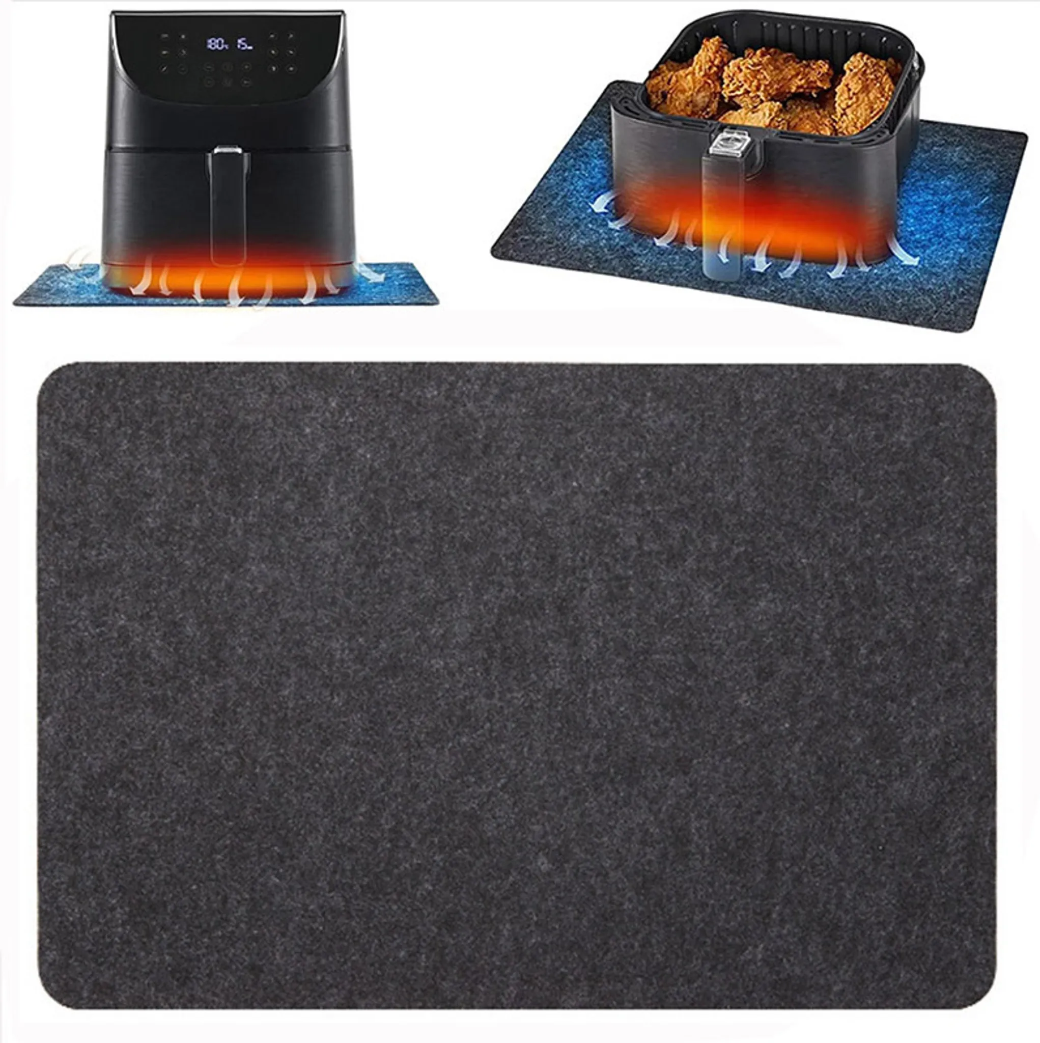 Schütze deine Küchenarbeitsplatte vor Hitze und Flecken! Diese beiden hitzebeständigen Unterlagen aus beschichtetem Glasfasergewebe halten Temperaturen von -50 °C bis 550 °C stand. Perfekt für Heißluftfritteusen, Backöfen, Mikrowellen, Kaffeemaschinen oder Grillpfannen. Die rutschfeste, wasserdichte Oberfläche ist lebensmittelecht und leicht zu reinigen – einfach abwischen und wiederverwenden. Mit den Maßen 60 x 40 cm passen die Matten unter die meisten Küchengeräte und schützen auch empfindliche Oberflächen aus Holz, Glas oder Marmor.