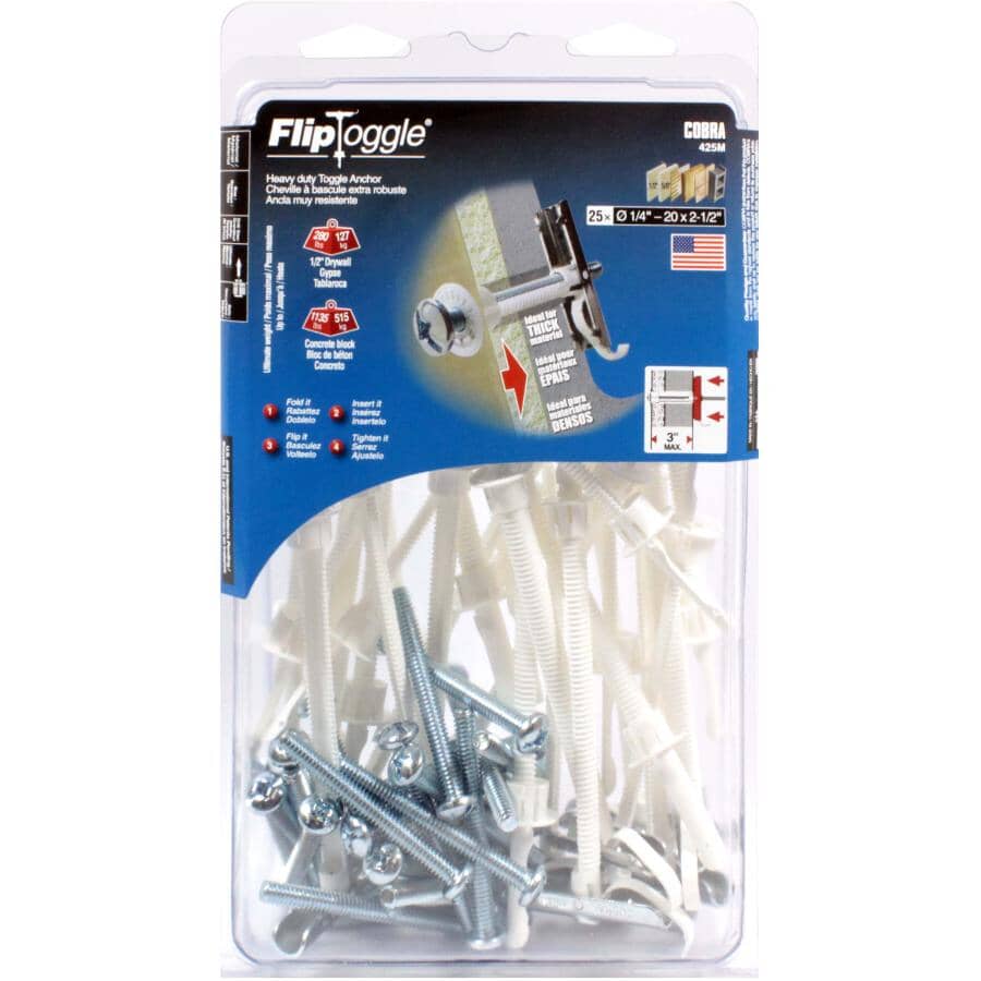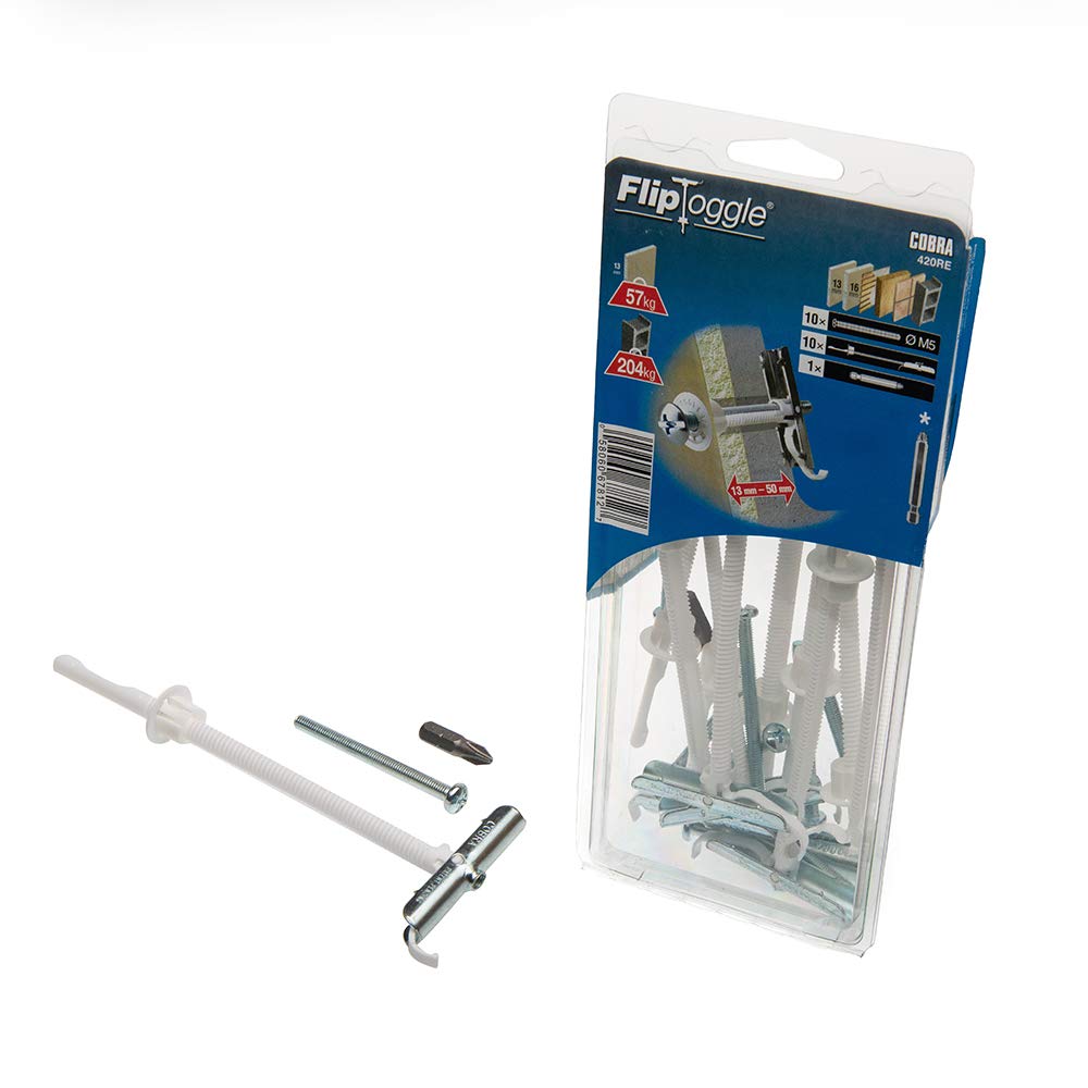 Heimwerker, diese Cobra FlipToggle Dübel sind einfach unschlagbar! Seit 1973 bewährt und doppelt so stark wie normale Knebelbolzen! Perfekt für Gipskartonwände bis 50mm Stärke. Einfach 12mm Loch bohren, Dübel rein, umklappen - fertig! Hält sicher bis zu 44kg - damit kannst du Regale, Bilder oder sogar TV-Halterungen sicher befestigen! Die Qualität ist absolut top und die Handhabung super einfach. Kein kompliziertes Gefummel mehr mit wackeligen Dübeln! Einfach bestellen und deine Wände professionell ausstatten! Damit machst du nie was falsch und hast jahrelang Freude an deinen Montagen! Ein absolutes Must-have für jede Werkstatt!
