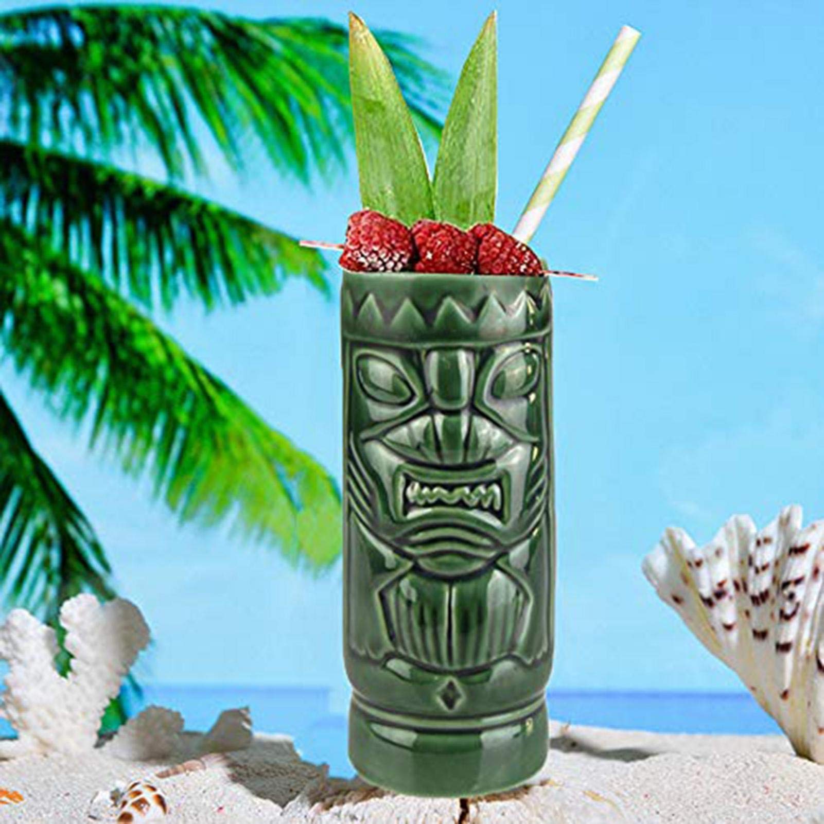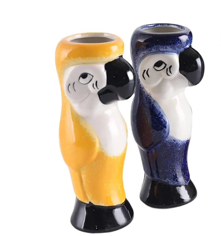 Aloha! Dieser coole Tiki-Becher im Papageien-Design bringt Südsee-Feeling auf deine Party! Aus hochwertiger Keramik gefertigt, 550ml Fassungsvermögen - perfekt für Cocktails, Smoothies oder exotische Getränke. Maße: 19,5x7,6x7,6cm. Die glatte Oberfläche ist leicht zu reinigen, der stabile Boden steht sicher. Ob für Hawaii-Partys, Gartenfeste oder als stylisches Accessoire für die Homebar - dieser Becher ist immer ein Hingucker. Auch super als Geschenk für Party-Liebhaber! Mach deine nächste Feier zum unvergesslichen Event mit diesem einzigartigen Trinkgefäß.