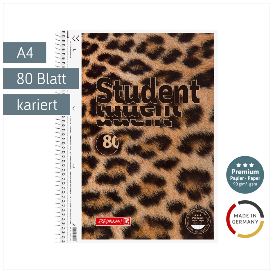 Für Schule, Studium oder Büro - diese BRUNNEN Collegeblöcke im 5er Pack sind einfach praktisch! Jeder Block hat 80 Blatt hochwertiges 90g/m² Papier, das sich super anfühlt und auf dem man richtig gut schreiben kann. Die Linierung 27 mit Randlinien innen und außen hilft dir, ordentlich zu bleiben. Microperforation und 4-fach-Lochung machen das Herausnehmen und Abheften von Seiten ganz einfach. Die Spiralbindung ist stabil und die extra starke Rückpappe gibt Halt. Das coole Design in onyx schwarz sieht einfach stylisch aus. Und das Beste: Hergestellt in Deutschland - da weiß man, was man hat! Perfekt für alle, die Wert auf Qualität und gutes Aussehen legen.
