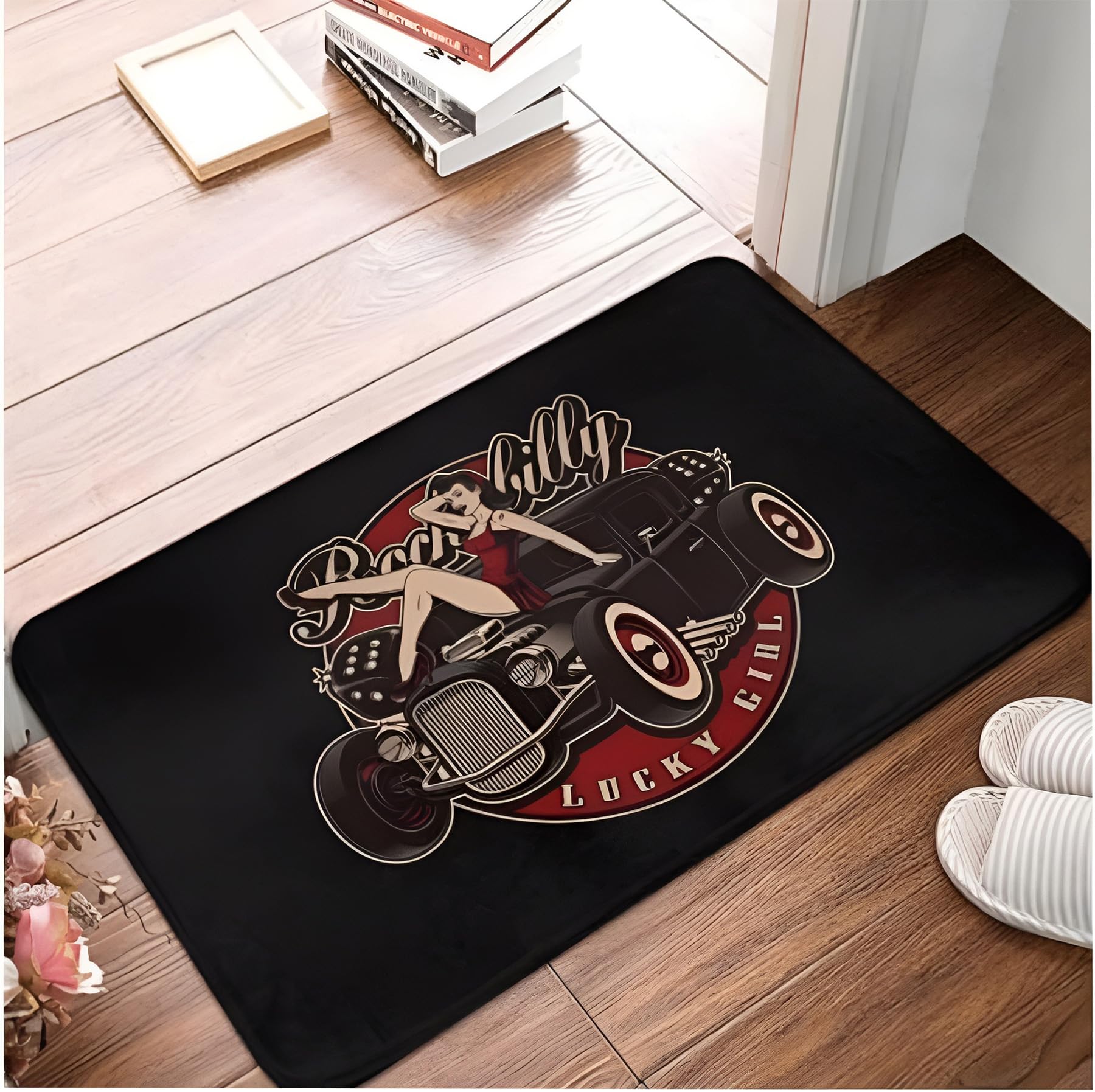Cooler Retro-Look für deine Wohnung! Diese Nuka Cola Fußmatte mit Pin-Up-Girl Design ist ein echter Hingucker. Maße 65x90cm, aus strapazierfähigem Polyester mit rutschfester Gummirückseite. Entfernt effektiv Schmutz und Schlamm. Maschinenwaschbar - einfach bei 30°C waschen. Perfekt für Eingang, Küche oder Bar-Bereich. Das hochauflösende Druckbild verblasst nicht. Macht jeden Raum individueller und stylischer!