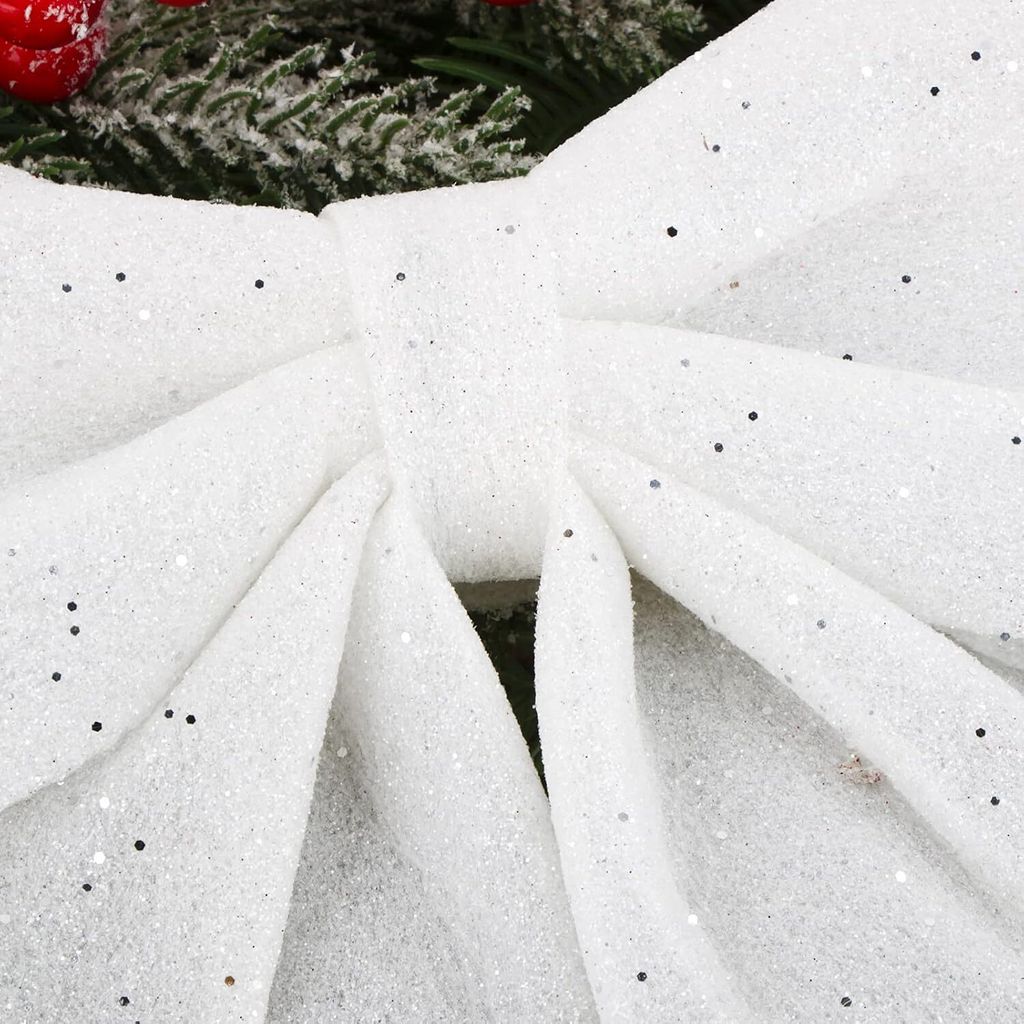 Mach deine Weihnachtsdekoration dieses Jahr besonders festlich! Dieses 3-teilige Schleifen-Set mit glitzernden Pailletten bringt den perfekten Weihnachtsglanz in dein Zuhause.\n\nIm Set enthalten:\n• 1 große Schleife: 24x25cm - der absolute Hingucker\n• 2 kleine Schleifen: 13x16cm - perfekt für Geschenke\n• Material: Hochwertiger Kunststoff mit Glitzereffekt\n• Farbe: Elegantes Silber mit Pailletten\n\nEinfache Montage:\nJede Schleife hat auf der Rückseite einen dünnen Draht - einfach um den Christbaumast wickeln, an Geschenke binden oder an der Tür befestigen. Hält sicher und sieht professionell aus!\n\nEinsatzmöglichkeiten:\n• Weihnachtsbaum-Schmuck als Blickfang\n• Geschenkverpackungen aufwerten\n• Türdekoration für festlichen Empfang\n• Esstisch-Dekoration für Weihnachtsessen\n• Fensterbank und Regale verschönern\n\nWarum diese Schleifen begeistern:\n• Fertig gebunden - keine Bastelei nötig\n• Wiederverwendbar - Jahr für Jahr einsetzbar\n• Edles Design - sieht teuer aus\n• Fester Halt - verrutscht nicht\n• Perfekte Größen - für jeden Einsatzzweck\n\nAchtung: Enthält kleine Teile, nicht für Kinder unter 3 Jahren geeignet.\n\nVerwandle dein Zuhause in eine Weihnachtswunderland! Mit diesen Schleifen wird jede Dekoration sofort festlicher. Ob am Baum, an Geschenken oder an der Tür - sie sorgen garantiert für bewundernde Blicke.