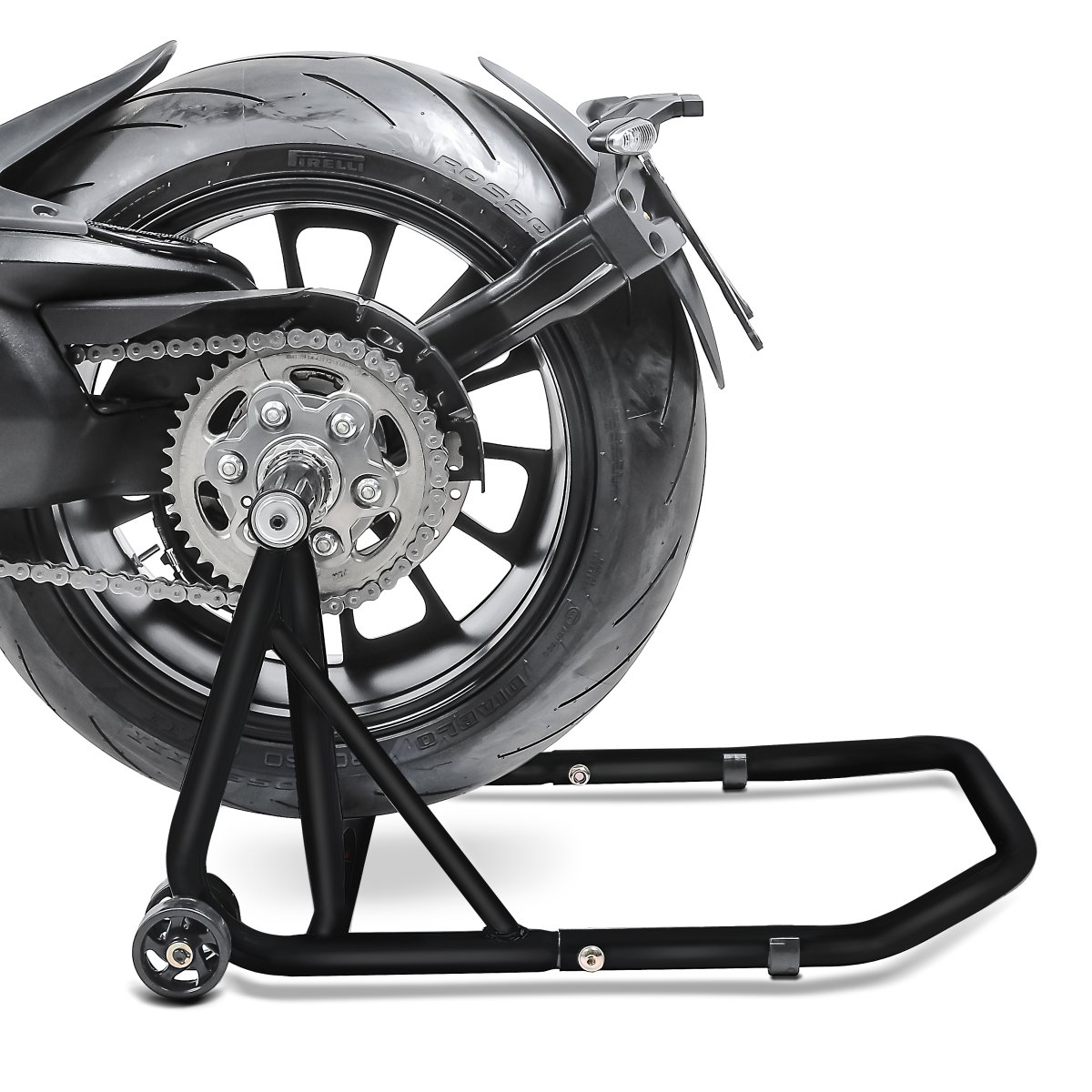Hey Schrauber! Für deine MV Agusta Brutale 800 (2013-2024) ist dieser Einarm-Montageständer von ConStands genau das Richtige. Speziell für Motorräder mit Einarmschwinge entwickelt - damit kannst du das Hinterrad easy aufbocken. Super stabil steht deine Maschine dann da, das Rad lässt sich trotzdem drehen. Perfekt für Reparaturen, Wartung oder einfach zum Überwintern. Im Lieferumfang sind schon die passenden Adapter (kugelgelagerte Bolzen) dabei. Mit nur ca. 5 kg Gewicht ist er leicht zu handhaben und lässt sich in zwei Teile zerlegen - platzsparend für Garage oder Keller. Die Kunststoffrollen machen das Aufbocken zum Kinderspiel, kaum Kraftaufwand nötig. Einfach paar Handgriffe und deine Brutale steht sicher und fest. Ob in der Werkstatt, auf der Rennstrecke oder daheim - mit diesem Ständer machst du alles richtig. Ein Qualitätsprodukt von ConStands, die wissen ja, was Motorradfahrer brauchen. Einfach bestellen und sich das Leben als Schrauber leichter machen!