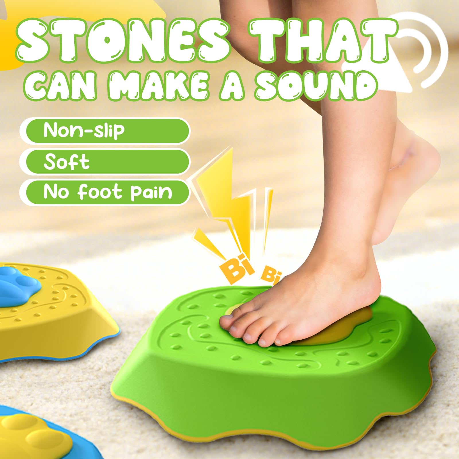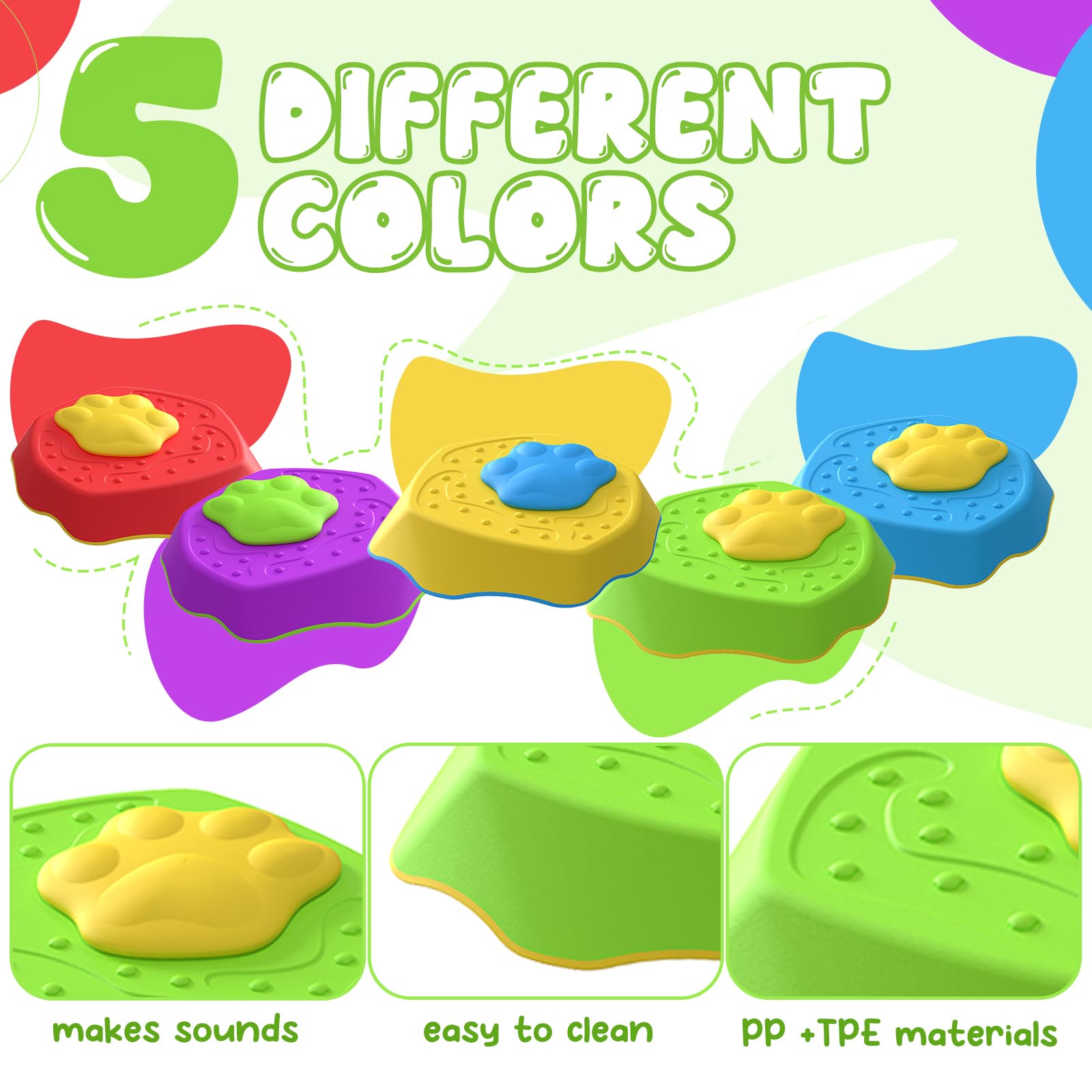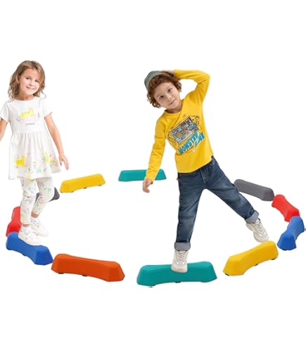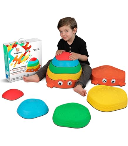 Richtig lustige Balanciersteine, die sogar Geräusche machen! Das Set mit 5 Steinen hat unterschiedliche Höhen und Oberflächen - super fürs Gleichgewichtstraining. Immer wenn die Kids drauftreten, gibt's coole Soundeffekte, das motiviert total und fördert nebenbei Koordination und Motorik. Die Steine sind aus robustem Kunststoff, absolut wetterfest und haben rutschfeste Böden. Perfekt für Garten, Park oder Wohnzimmer - 'Boden ist Lava' spielen macht damit richtig Spaß! Die Steine lassen sich immer neu kombinieren, fördern Kreativität und Teamwork. Und das Beste: Sie sind superleicht zu reinigen und platzsparend stapelbar. Einfach geniales Spielzeug, das Kinder von Bildschirmen weglockt und für Bewegung sorgt. Für Kinder ab 3 Jahren ideal - pädagogisch wertvoll und macht einfach irre Spaß!