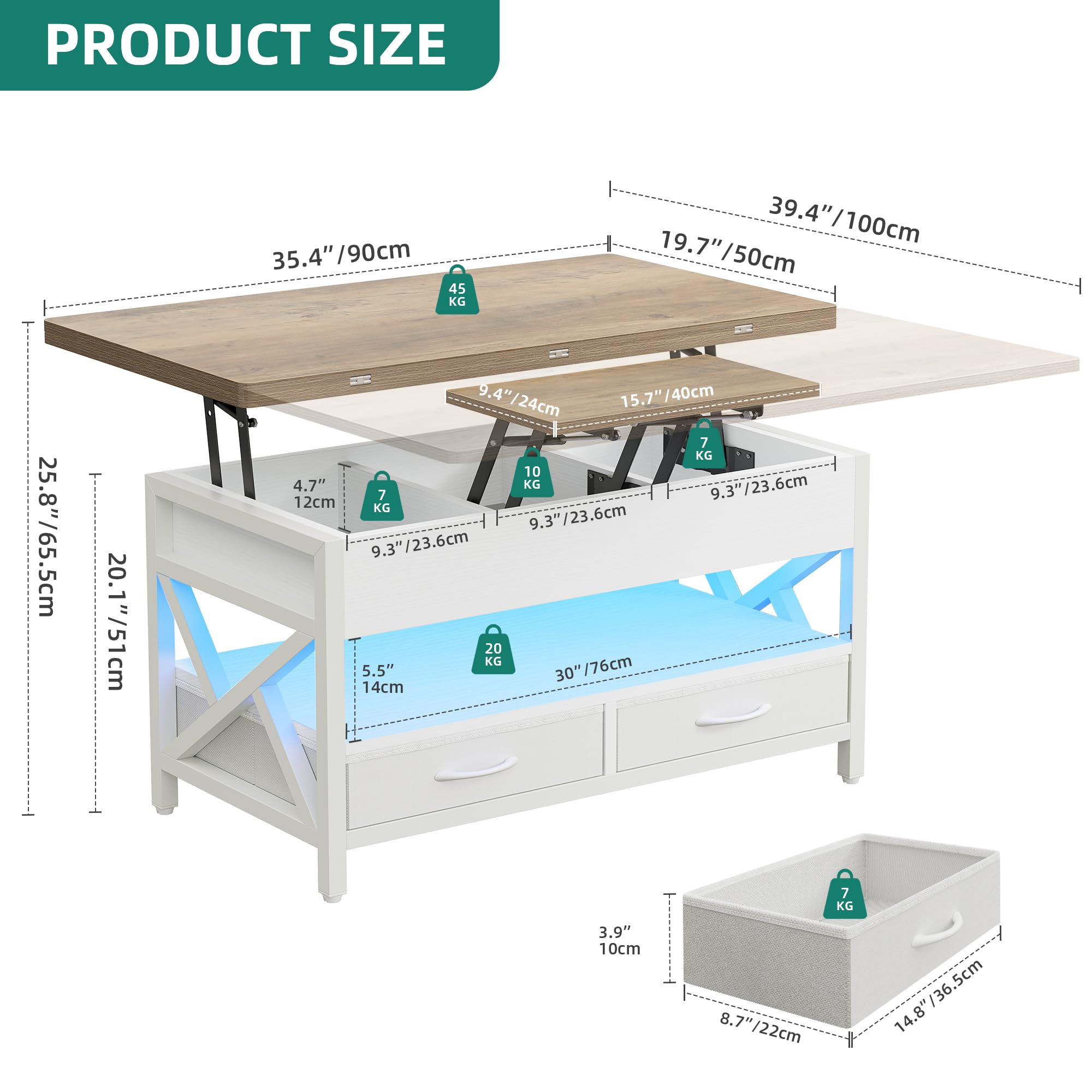 YITAHOME Couchtisch Höhenverstellbar - Mit LED Beleuchtung & Schublade