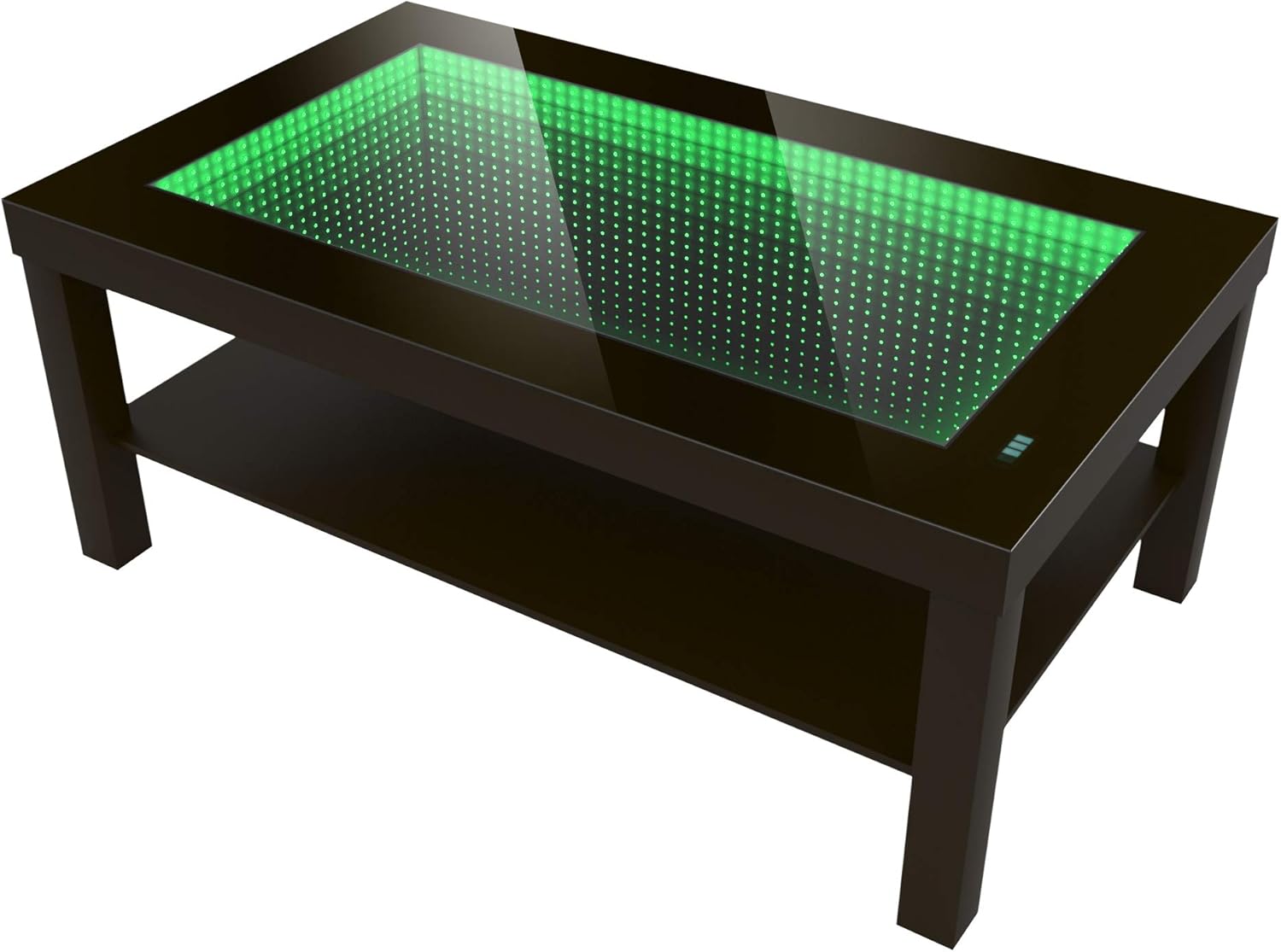 Dieser LED-Couchtisch bringt modernes Flair in dein Wohnzimmer! Mit seinen zwei praktischen Schubladen bietet er viel Stauraum für Fernbedienungen, Zeitschriften und andere Kleinigkeiten. Das Highlight: Die integrierte LED-Beleuchtung mit App-Steuerung! Wähle aus 29 verschiedenen Lichtstilen und über 6 Millionen Farben - so schaffst du im Handumdrehen die perfekte Atmosphäre. Der transparente Präsentationsbereich lässt deine Deko-Objekte besonders zur Geltung kommen. Mit den Maßen 70x70x41cm passt der Tisch ideal in verschiedene Wohnsituationen, ohne zu viel Platz wegzunehmen. Die hochglänzige schwarze Oberfläche ist pflegeleicht und sieht immer wie neu aus. Bis zu 30 kg trägt die stabile Platte - da kannst du getrost deine Füße hochlegen oder Gäste bewirten. Ob alleine oder mit Freunden - dieser Couchtisch macht einfach eine gute Figur! Einrichtung war noch nie so einfach und stylisch. Perfekt für alle, die ihr Wohnzimmer aufwerten möchten!