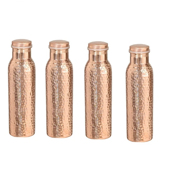 Trinkwasser mal anders - und zwar aus purem Kupfer! Dieses wunderschöne Set mit 900ml Flasche und zwei 200ml Bechern ist nicht nur ein Hingucker, sondern auch richtig gesund. Im Ayurveda schwört man seit Jahrhunderten auf Kupfergefäße - das Wasser soll antibakteriell wirken und den Stoffwechsel anregen. Handgefertigt in Indien im traditionellen Hammerschlag-Design, aus 99,9% reinem Kupfer. Die Flasche ist 26,5cm hoch und wiegt nur 240g - perfekt für unterwegs. Mit der Zeit bildet sich eine natürliche Patina, die dem Ganzen noch mehr Charakter verleiht. Wenn du den Glanz erhalten willst, einfach mit Zitrone und Salz reinigen. Ein tolles Geschenk für Gesundheitsbewusste oder einfach für dich selbst - stylisch, traditionell und functional zugleich!