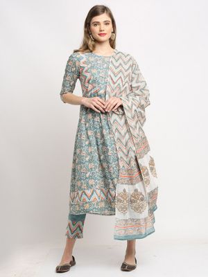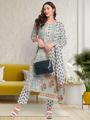 Rajnandini Damen Kurta-Set Cremefarben - Reine Baumwolle Mit Bestickung & Dupatta Größe S