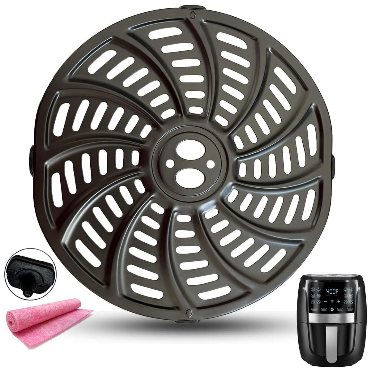 Heißluftfritteuse-Besitzer, diese Grillplatte wird euer Kochen revolutionieren! Die 17x17cm große Platte passt perfekt in die meisten Heißluftfritteusen-Modelle. Mit der super Antihaft-Beschichtung brennt nichts an und die Reinigung ist ein Kinderspiel - einfach in die Spülmaschine oder kurz abspülen. Das geniale Design sorgt für eine mega gleichmäßige Wärmeverteilung - ob Pommes, Pizza, Hähnchen oder Gemüse, alles wird perfekt knusprig. Die erhöhten Ränder verhindern, dass was daneben tropft. Aus robustem Karbonstahl - hält auch bei hohen Temperaturen problemlos. Super platzsparend zu verstauen und in schickem Schwarz. Ob für Fleisch, Fisch oder vegetarische Gerichte - mit dieser Platte werdet ihr eure Heißluftfritteuse noch mehr lieben! Einfach die originale Platte austauschen und schon könnt ihr noch vielfältiger kochen.