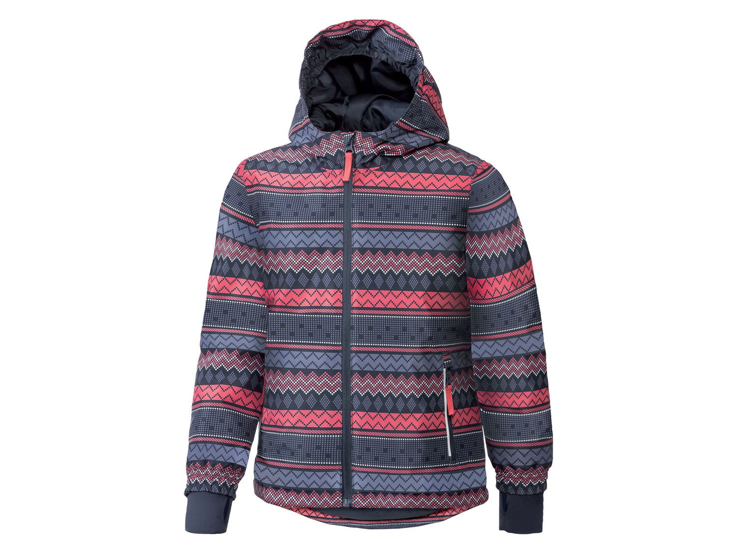 Praktische Features: Durchgehender Reißverschluss mit Kinnschutz (nicht kratzig!), Ärmelstulpen mit Daumenloch gegen kalte Zugluft und eine verlängerte Rückseite - da rutscht nix hoch!