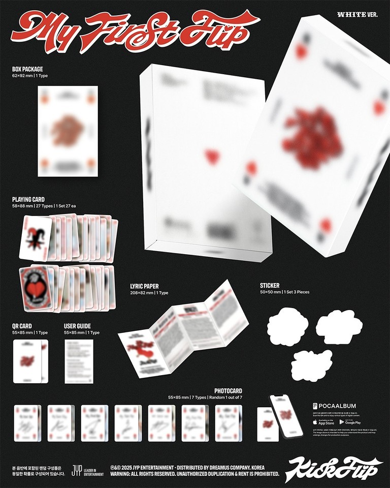 Achtung K-Pop Fans! Das heiß erwartete 3rd Mini Album 'My First Flip' von Kick-Flip ist da - in der exklusiven Crush Version! Release am 22.09.2025. Das Package ist vollgepackt mit tollen Inhalten: CD, 36-seitigem Booklet, gefaltetem Poster, Sticker (1 von 7 zufällig) und Photocard (1 von 7 zufällig). Als Pre-Order Bonus gibt's noch einen Mini Coaster (1 von 7) und eine weitere Photocard (1 von 7) dazu! Wichtig: Pre-Order Geschenke gibt's nur während der Vorbestellphase. Unbedingt ein Unboxing-Video machen falls was fehlt oder defekt ist. Das Album zählt für Hanteo und Gaon Charts - also perfekt für eure Sammlung! Original aus Südkorea, 100% neu und originalverpackt.
