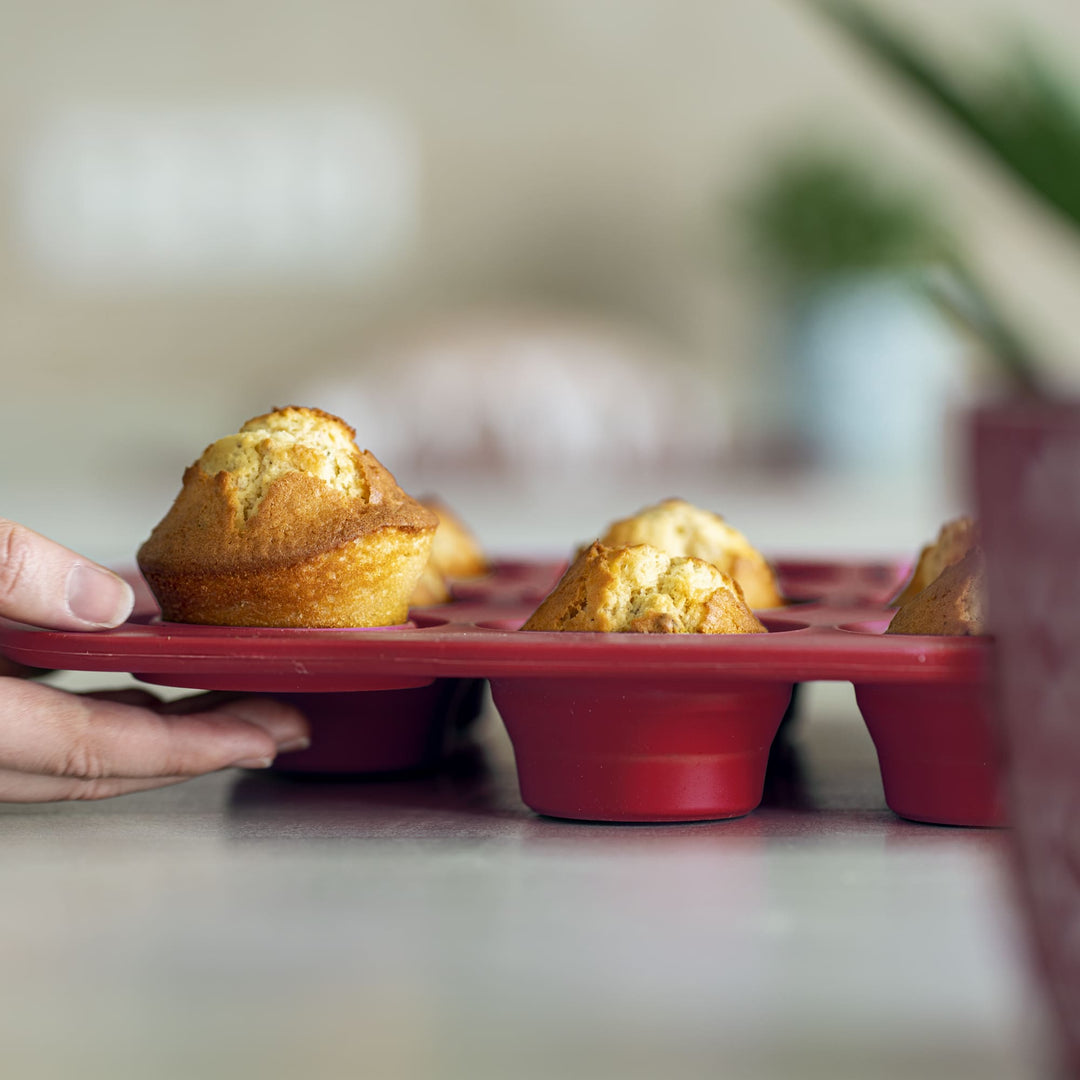 Das Silikon ist hitzebeständig bis 220°C, spülmaschinenfest und braucht kein Einfetten. Ob im Ofen, Kühlschrank oder Mikrowelle - die Förmchen machen alles mit und sind geschmacksneutral.