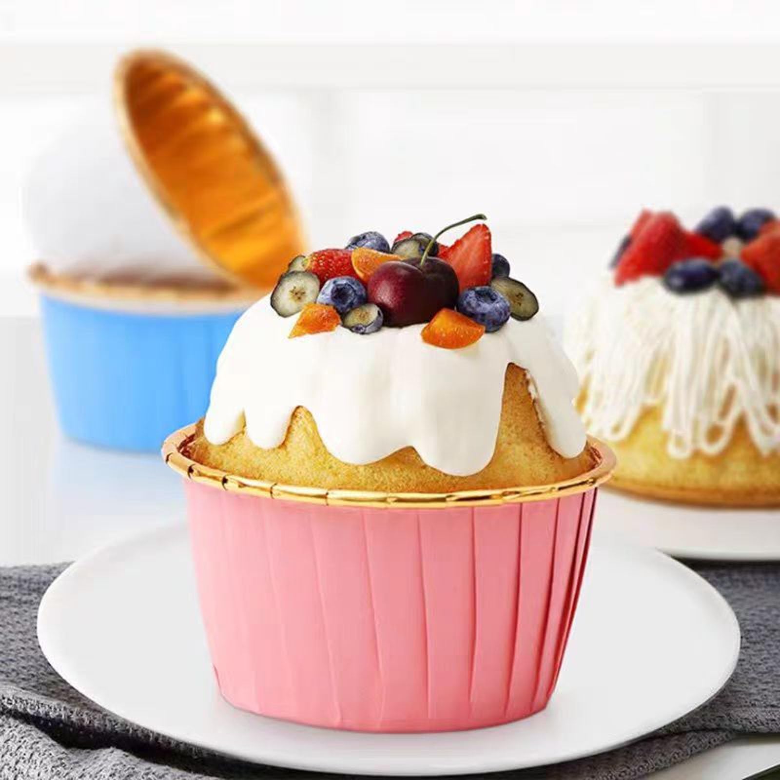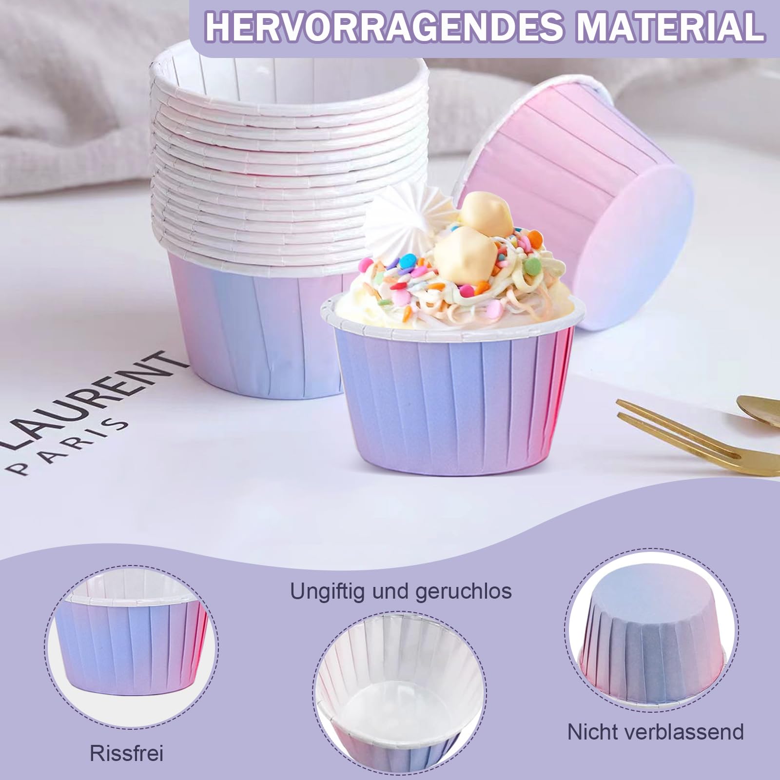150 bunte Muffinförmchen für deine nächste Back-Action! Im Set: 50 rosa, 50 blaue und 50 gelbe Förmchen mit süßen weißen Punkten - sieht einfach fröhlich aus! Aus qualitativem Papier, geruchsneutral und lebensmittelecht. Mit ca. 5cm Boden- und 6cm Öffnungsdurchmesser, 4,7cm hoch - perfekt für Standard-Muffinbleche. Ob für Geburtstage, Hochzeiten, Sommerpartys oder einfach so - damit werden deine Cupcakes zum Hingucker! Einfach ins Blech setzen, Teig rein und ab in den Ofen. Nach dem Backen lassen sich die Muffins super einfach herausnehmen. Macht jedes Back-Event bunter und spaßiger! Mit 150 Stück hast du genug für mehrere Back-Sessions oder eine große Party. Einfach unverzichtbar für alle Hobby-Bäcker da draußen!