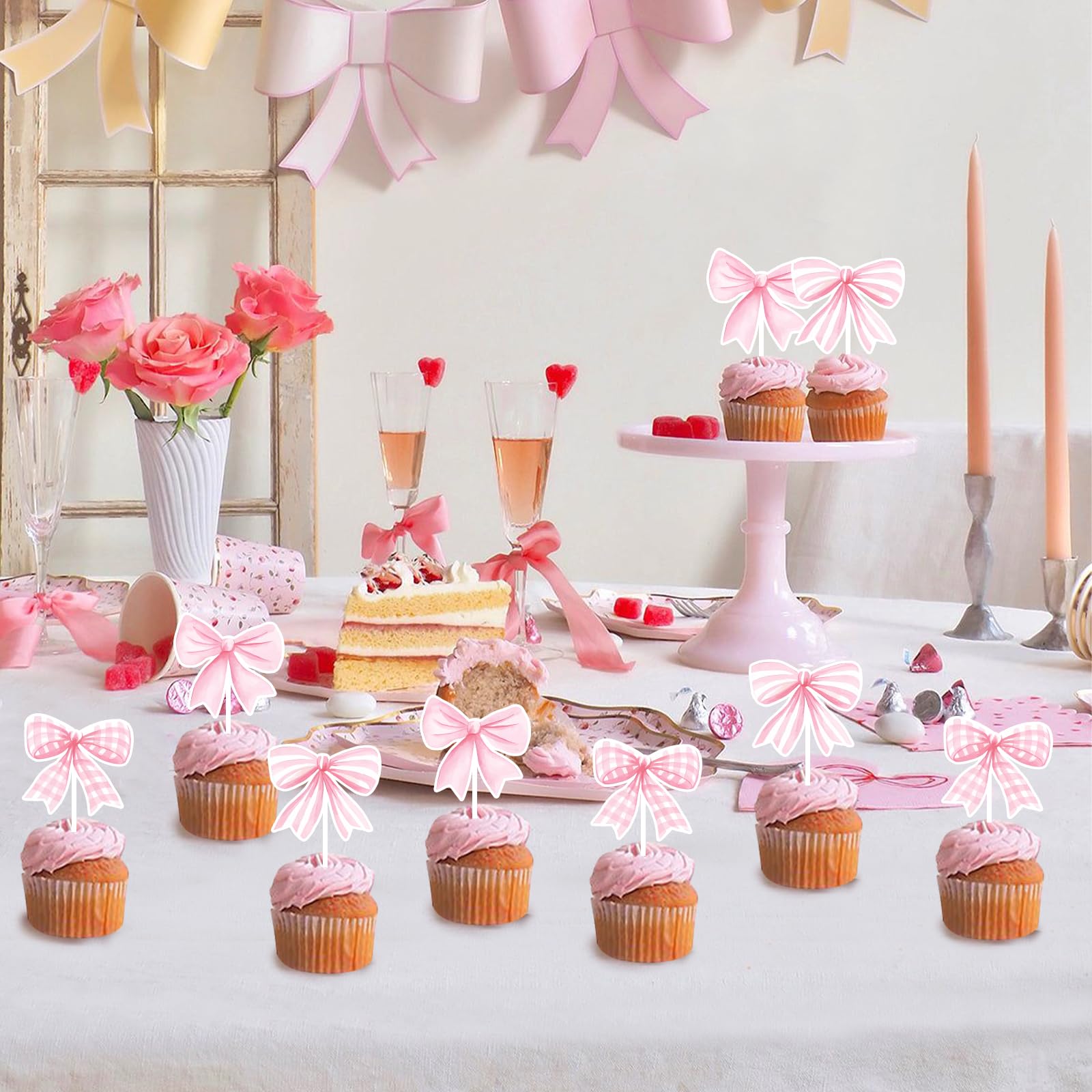 Suchst du süße Deko für deine Cupcakes oder Torte? Diese 24 rosa Schleifen-Topper sind genau das Richtige für deine nächste Feier! Jede Schleife misst 7,6 x 6,9 cm und ist aus hochwertigem Satinband aus 100% Polyester gefertigt - richtig schön stabil und langlebig. Das Beste: Zwischen den Schichten versteckt sich ein kleiner Zahnstocher, den du einfach in deine Cupcakes, Muffins oder Torten stecken kannst. Super einfach, kein Kleben oder Basteln nötig! Perfekt für Mädchengeburtstage, Babypartys, Taufen oder Hochzeiten. Diese niedlichen Schleifen verwandeln ganz normale Cupcakes in richtige Hingucker und sorgen für eine fröhliche, festliche Atmosphäre. Deine Gäste werden begeistert sein! Ob auf dem Geburtstagstisch, der Hochzeitstorte oder als Teil einer größeren Tischdekoration - diese Schleifen machen einfach überall eine gute Figur. Und weil sie aus Polyester sind, kannst du sie auch bedenkenlos für Lebensmittel verwenden. Also, worauf wartest du? Mach deine nächste Feier unvergesslich mit diesen entzückenden Schleifen-Deko-Elementen!