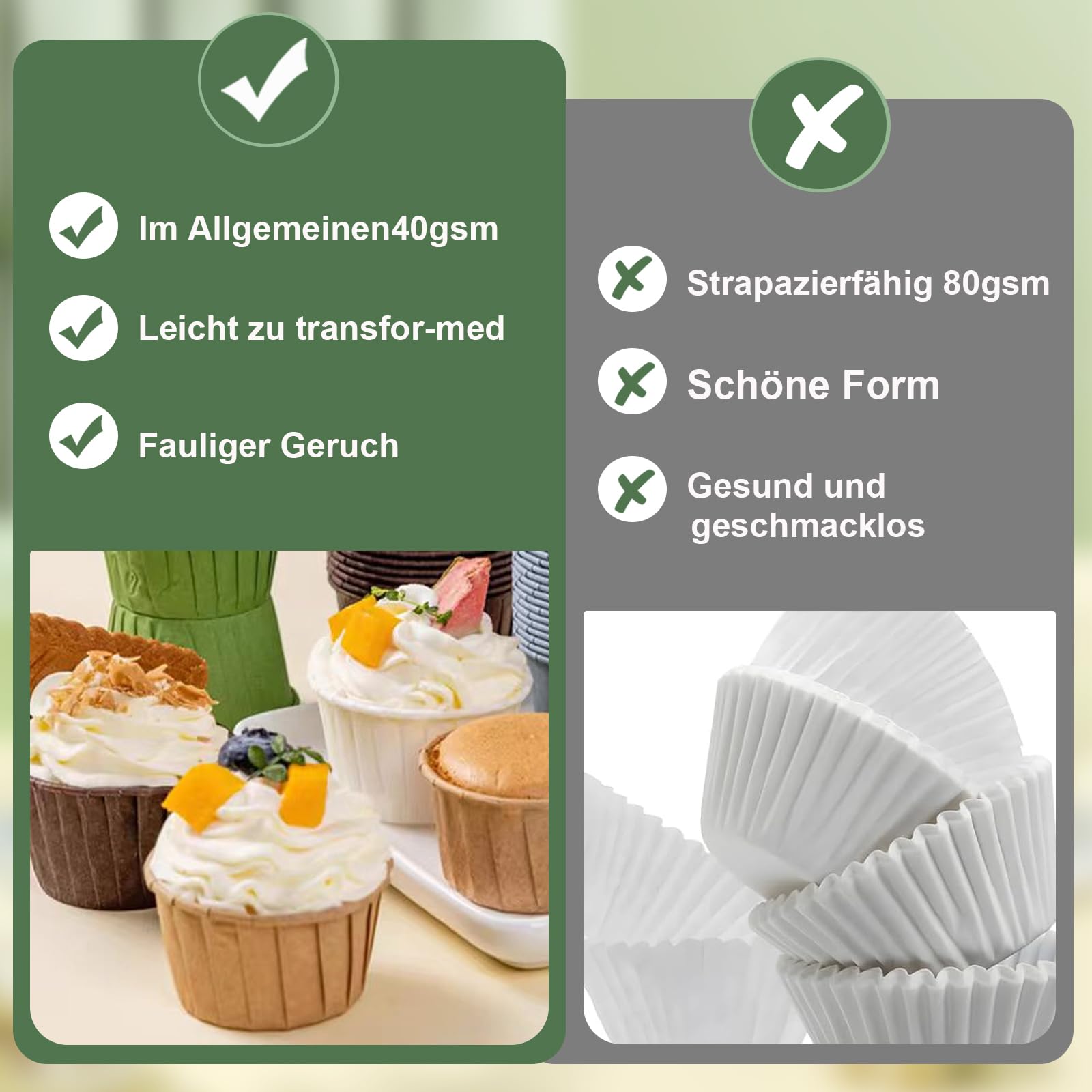 Hobby-Bäcker und Profi-Konditoren! Diese Cupcake Wrapper im 150er-Set machen deine Backkreationen zum absoluten Hingucker! Hergestellt aus 100% natürlichem Zellstoff in Lebensmittelqualität - sicher und unbedenklich für deine Leckereien! Die perfekte Größe von 5x6x4,7 cm ist ideal für Standard-Muffin-Bleche! Besonders praktisch: Die ölbeständige Beschichtung verhindert das Durchweichen und sorgt für gleichmäßiges Backergebnis! Im Set enthalten: 50 rosa, 50 blaue und 50 gelbe Förmchen - bunte Vielfalt für jede Gelegenheit! Die Förmchen sind faltenfrei und behalten ihre Form auch beim Backen - deine Cupcakes sehen immer perfekt aus! Einfache Handhabung: Teig einfüllen, in den Ofen schieben und nach dem Backen leicht entnehmen! Die glatte Oberfläche verhindert das Ankleben - saubere Cupcakes garantiert! Vielseitig einsetzbar: Für Geburtstage, Hochzeiten, Partys, Halloween oder einfach für den täglichen Genuss! Auch ideal als Candybar-Becher für Süßigkeiten, Popcorn oder Eis! Robust und für mehrere Backdurchgänge wiederverwendbar! Perfekt für private Feiern, Cafés oder Bäckereien! Mach deine Cupcakes und Muffins zu kleinen Kunstwerken und begeistere deine Gäste mit dieser bunten Präsentation! Hol dir dieses praktische Back-Set und backe dir in die Herzen deiner Liebsten!