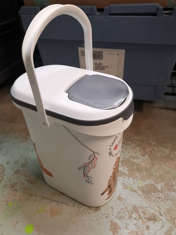 Schluss mit offenen Hundefutter-Beuteln die überall rumstehen! Dieser Curver Behälter hält das Futter deines Hundes frisch und geruchsicher. Mit 6l Volumen passen bis zu 2,5kg Trockenfutter rein - perfekt für kleine und mittlere Hunde. Der luftdichte Deckel mit Schnappverschluss sorgt dass die Kroketten knusprig bleiben und kein Geruch rauskommt. Zwei Öffnungen: eine große zum Befüllen, eine kleine Klappe zum Dosieren. Mit praktischem Tragegriff einfach zu transportieren. In schickem Weiß passt er in jede Küche. Dein Hund kommt nicht mehr selbst ans Futter - und deine Küche riecht nicht mehr nach Hundefutter!