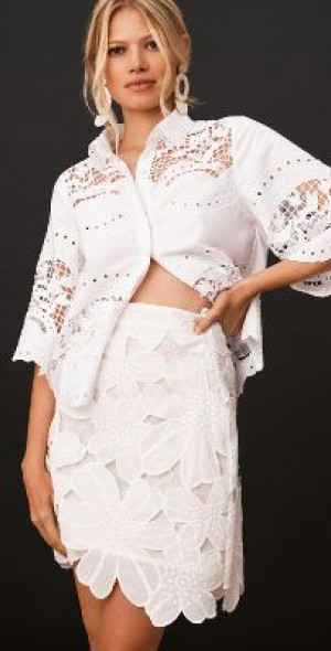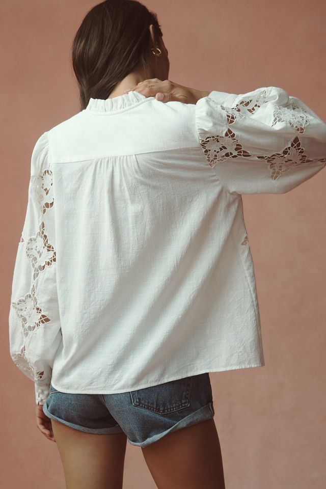 Damen Bluse Mit Cutwork Details - Baumwolle Mit Knöpfen