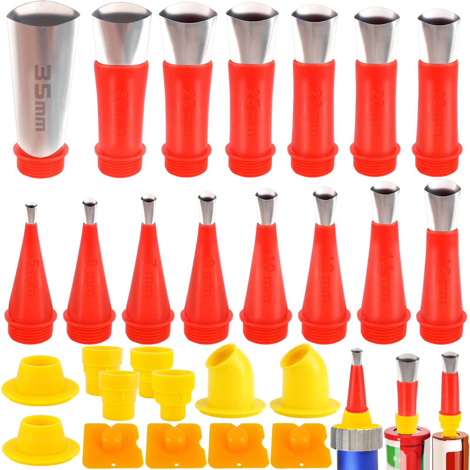 Dieses mega-praktische Düsen-Set mit 29 Teilen ist ein echter Game-Changer für alle Heimwerker! Aus hochwertigem Edelstahl - viel besser als diese billigen Plastik-Düsen. 16 verschiedene Größen von 5cm bis 30cm, dazu 10 Basen und Zubehör. Die 45-Grad-Mundform ist genial für Ecken und schräge Flächen. Passt auf fast jede Kartusche und ist wiederverwendbar - einfach reinigen und wieder verwenden. Super für Silikon, Acryl, Kleber oder Fugenmasse. Ob im Bad, Küche oder bei Fenstern - damit werden deine Dichtarbeiten richtig professionell. Kein Gepfusche mehr, sondern saubere, gerade Fugen. Einfach montieren, ohne Werkzeug. Das Set hat alles, was du brauchst!