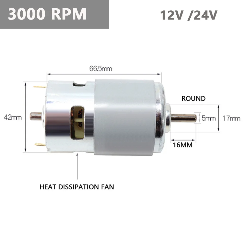 Kraftpaket für deine Projekte! Dieser DC 775 Motor liefert je nach Spannung 3500-9000 U/min und packt richtig zu. Mit Kugellager vorne und Kupfermantel hinten für lange Lebensdauer. Technische Daten: Schaft 5mm Durchmesser, 17mm Länge. Körperdurchmesser 42mm, Gesamtlänge 98mm. Montagelöcher M4 (2 Stück). Leise im Betrieb und mit großem Drehmoment. Perfekt für Elektrowerkzeuge, DIY-Projekte oder Modellbau. Unterschiedliche Leistungen: 12V=3500 U/min, 18V=4500 U/min, 24V=7000 U/min, 30V=8100 U/min, 36V=9000 U/min. Achtung: Bei manueller Messung kann's mal 1-2cm Abweichung geben. Einfach anschließen und loslegen!