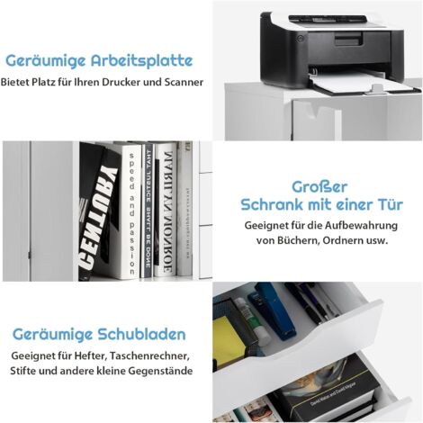 Super praktisch! Dieser Rollcontainer hat 5 geräumige Schubladen plus ein extra Schrankfach mit Tür - ideal für Akten, Büromaterial oder sogar Snacks. Die Metallschienen laufen super glatt, und die Oberseite eignet sich perfekt als Ablage für Drucker oder als zusätzliche Arbeitsfläche. Das schlichte Design passt in jedes Büro oder Home Office. Mit den 4 Rollen schiebst du ihn einfach dahin, wo du ihn brauchst - die vorderen Räder lassen sich fixieren, damit er stabil steht. Aus robustem, kratzfestem Holz gefertigt und trägt bis zu 68 kg. Der Aufbau ist echt unkompliziert, dank klarer Anleitung. Perfekt, um Ordnung zu halten und alles griffbereit zu haben!