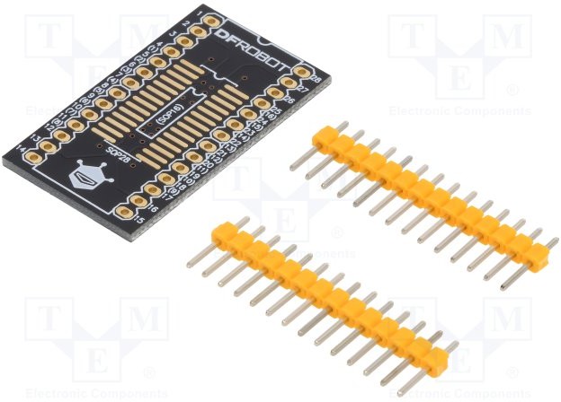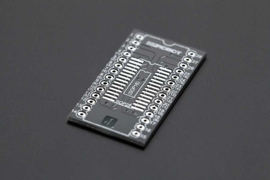 Mega praktisch für alle Elektronik-Bastler! Dieses Prototyping Board von DFRobot verwandelt SOP16, SOP28 und SSOP28 SMD-Chips in DIP16/DIP28 - perfekt fürs Breadboarding. Du musst nicht extra DIP-Chips kaufen, sondern kannst einfach deine SMD-Bauteile auf dieses Board löten und dann ganz normal aufs Steckboard stecken. Die Platine ist schwarz, misst 21,7x38,5x1,6mm und wird inklusive zwei 14-Pin-Stiftleisten geliefert. Super einfach zu verwenden und mehrfach nutzbar. Ob für Arduino-Projekte, Raspberry Pi oder andere Elektronik-Experimente - mit diesem Adapter sparst du dir viel Ärger und kannst direkt loslegen. Einfach den SMD-Chip auf die entsprechende Fläche löten, die Stiftleisten anbringen und schon passt alles aufs Breadboard. Total clever für Prototyping und Entwicklung!