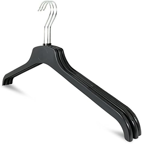 Ordnung im Kleiderschrank war noch nie so einfach! Dieses 100er-Set praktischer Kleiderbügel aus stabilem Kunststoff bietet alles was du brauchst: Hosensteg für Hosen, 2 Rockaufhänger, Krawattenhalter, Gürtelhaken und Anti-Rutsch-Rillen für trägerlose Kleidung. Maße: 40-41cm breit, 21-22cm hoch mit drehbaren Haken. In elegantem Schwarz - passt zu jedem Schrank. Perfekt für Privathaushalte, Hotels oder Textilgeschäfte. Spare Platz und halte deine Kleidung in Form. Einmalige Investition für jahrelange Ordnung - dein Kleiderschrank wird es dir danken!