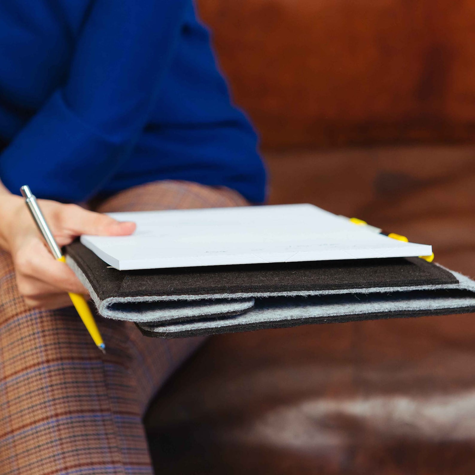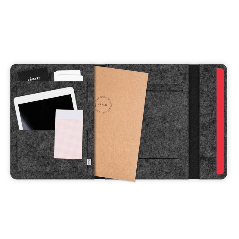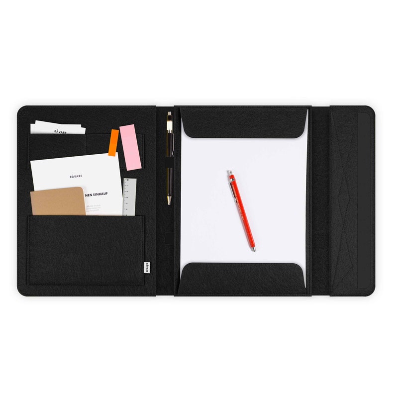 Alles im Griff - ob im Büro oder auf Reisen! Diese elegante Filzmappe in Anthrazit hält deine wichtigen Dokumente sicher organisiert. Das große Hauptfach für DIN A4 Unterlagen, plus drei praktische Innentaschen für Reisepass, Kreditkarten und Visitenkarten. Der integrierte Stifthalter sorgt dafür, dass du immer einen Kuli griffbereit hast. Besonders clever: Der Riemen auf der Rückseite - einfach über den Trolley-Griff schieben und schon reist deine Mappe bequem mit. Nur 79 Gramm leicht und trotzdem stabil - passt in jede Aktentasche oder kann solo unterwegs. Aus nachhaltigem Kunststoff-Filz - langlebig und pflegeleicht. Dein perfekter Begleiter für Geschäftsreisen, Urlaub oder den täglichen Bürogebrauch! 💼✈️