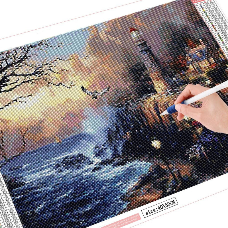 Entdecke die entspannende Welt des Diamond Paintings! Dieses Leuchtturm-Motiv mit Möwen bringt mediterranes Flair in deine vier Wände. Alles dabei was du brauchst: Leinwand mit klebriger Oberfläche, funkelnde 5D-Diamanten, Stift, Tablett und sogar Wachs für besseren Halt. Einfach die Schutzfolie stückweise abziehen und Diamant für Diamant setzen. Perfekt zum Abschalten nach einem stressigen Tag - meditativ und total befriedigend. Die Diamanten haben 9 Facetten - das Bild glitzert richtig schön wenn's fertig ist. 30% extra Diamanten sind dabei, falls mal einer verloren geht. Das Ergebnis? Ein atemberaubendes Bild das sich super als Wanddekoration macht. Ob fürs Wohnzimmer, Schlafzimmer oder als Geschenk - damit machst du garantiert Freude. Auch super für Kinder ab etwa 8 Jahren (unter Aufsicht). Tauche ein in die bunte Welt der Diamant-Malerei!