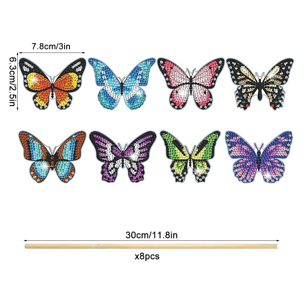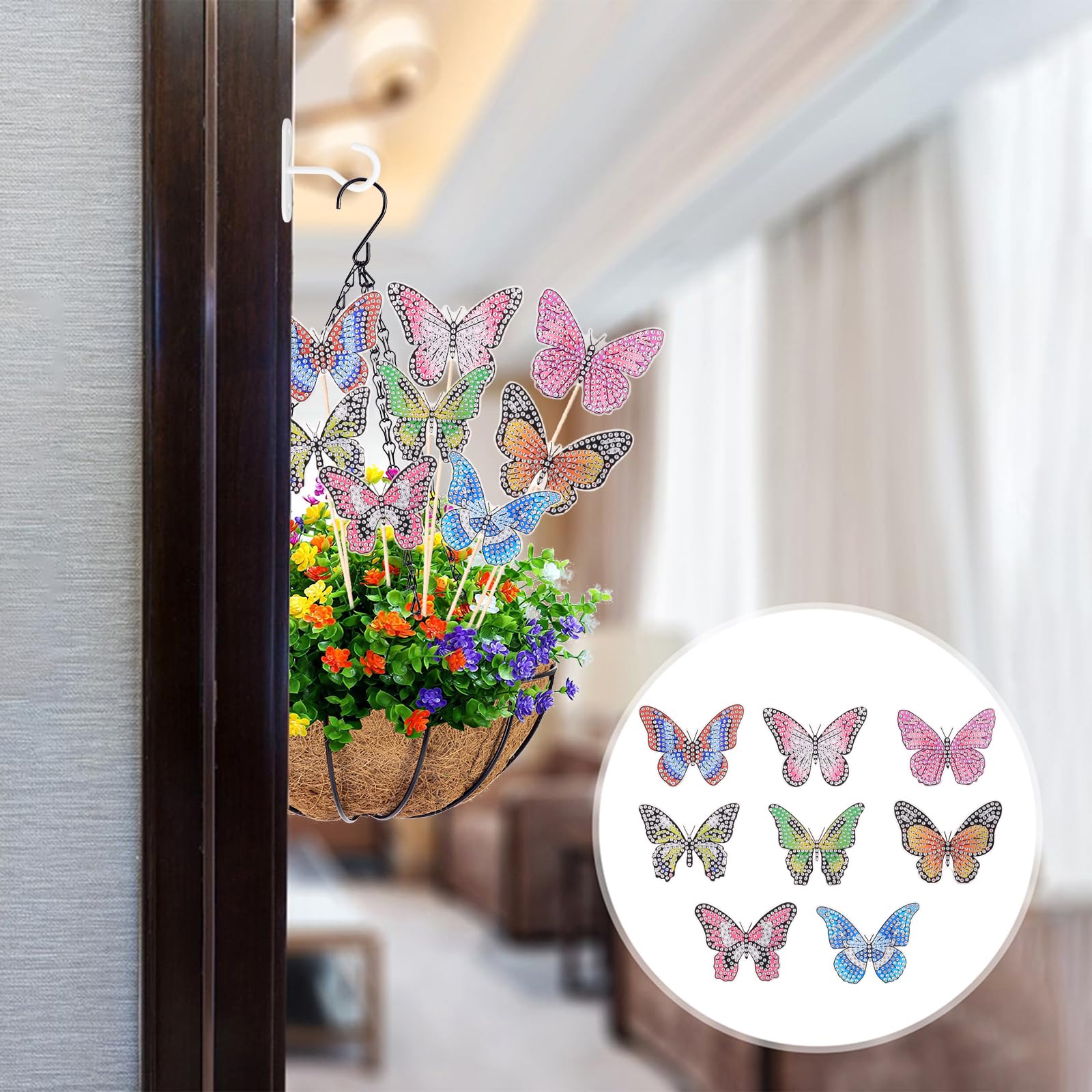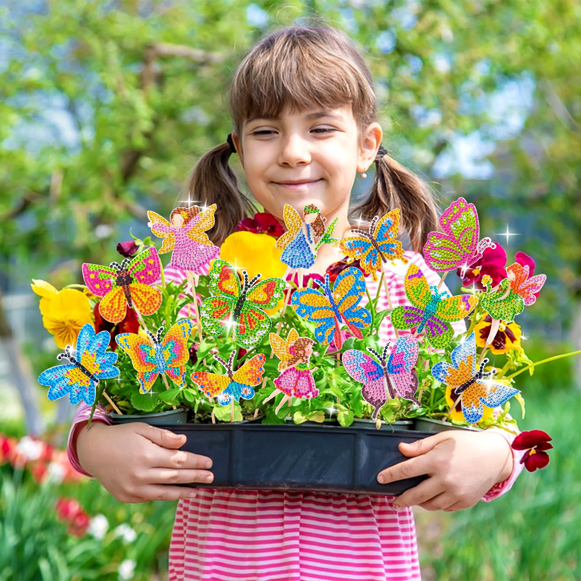 Wow, dieses 8-teilige Diamond Painting Set mit zarten Schmetterlingen bringt richtig Farbe in dein Zuhause! Perfekt für alle, die gerne kreativ sind - ob jung oder alt. Die Acryl-Diamanten glitzern total schön und die Motive sehen hinterher richtig professionell aus. Einfach die Schutzfolie abziehen, die Strasssteinchen mit dem beiliegenden Stift aufkleben und schon entstehen diese wunderschönen Schmetterlinge. Mit den 30 cm langen Holzstäbchen und Saugnäpfen kannst du sie dann überall befestigen - im Blumentopf, am Fenster oder auf dem Balkon. Das Set ist komplett mit allem, was du brauchst: 8 Schmetterlingsbilder, Holzstäbe, Saugnäpfe, doppelseitige Kleber, Diamantstift, Tablett, Tonkleber und 16 Tütchen mit bunten Diamanten. Super als Geschenk für Geburtstage oder einfach mal als kleine Aufmerksamkeit für dich selbst! Die Diamantbilder machen nicht nur Spaß beim Basteln, sondern sehen auch als Deko total stylisch aus. Probiere es aus und verwandle deine Pflanzen in kleine Kunstwerke!