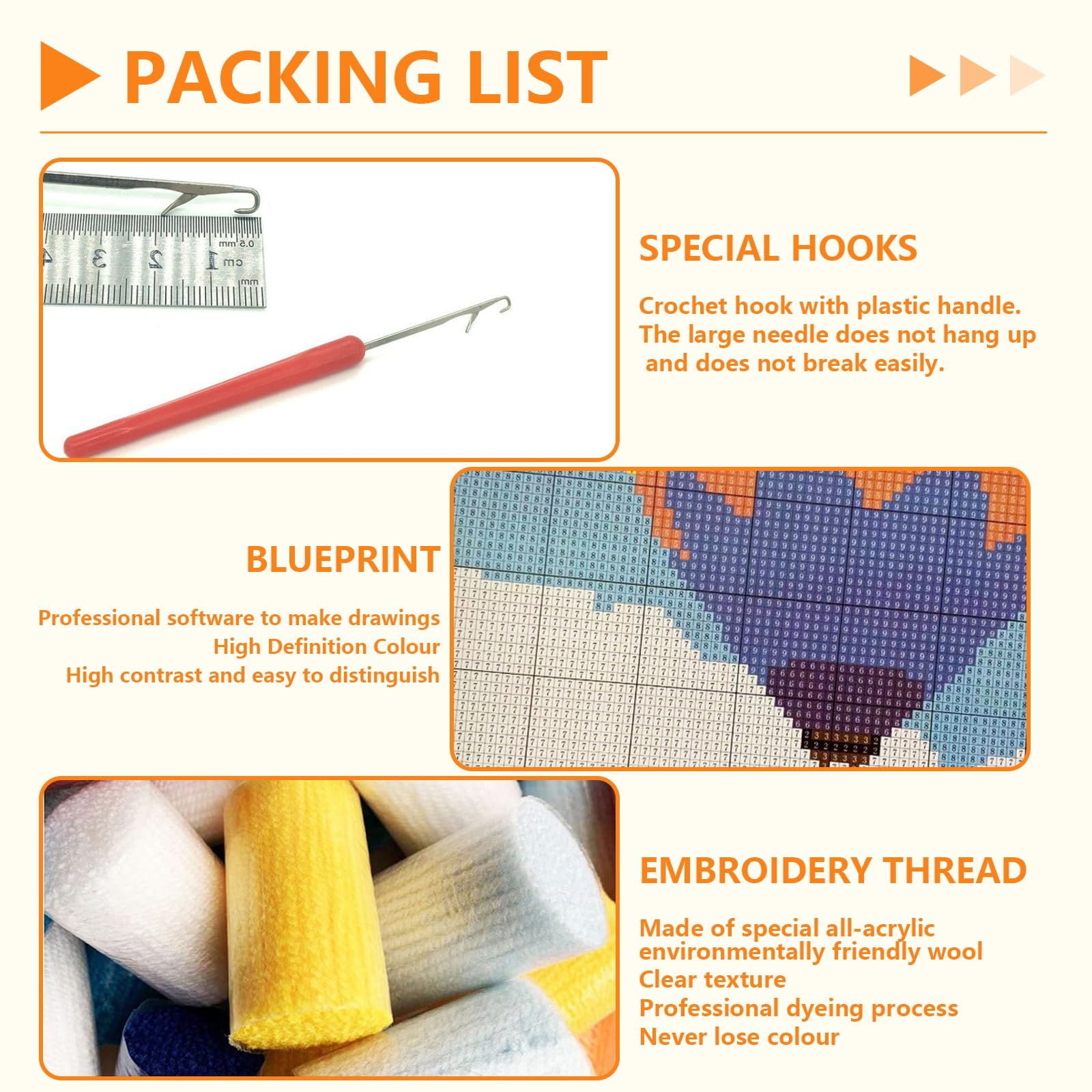 Entdecke die entspannende Welt des Teppichknüpfens! Dieses komplett Set enthält alles, was du brauchst: vorgedruckte Leinwand mit süßem Hochlandrind-Motiv, bunte Wolle, Häkelnadel und leicht verständliche Anleitung.