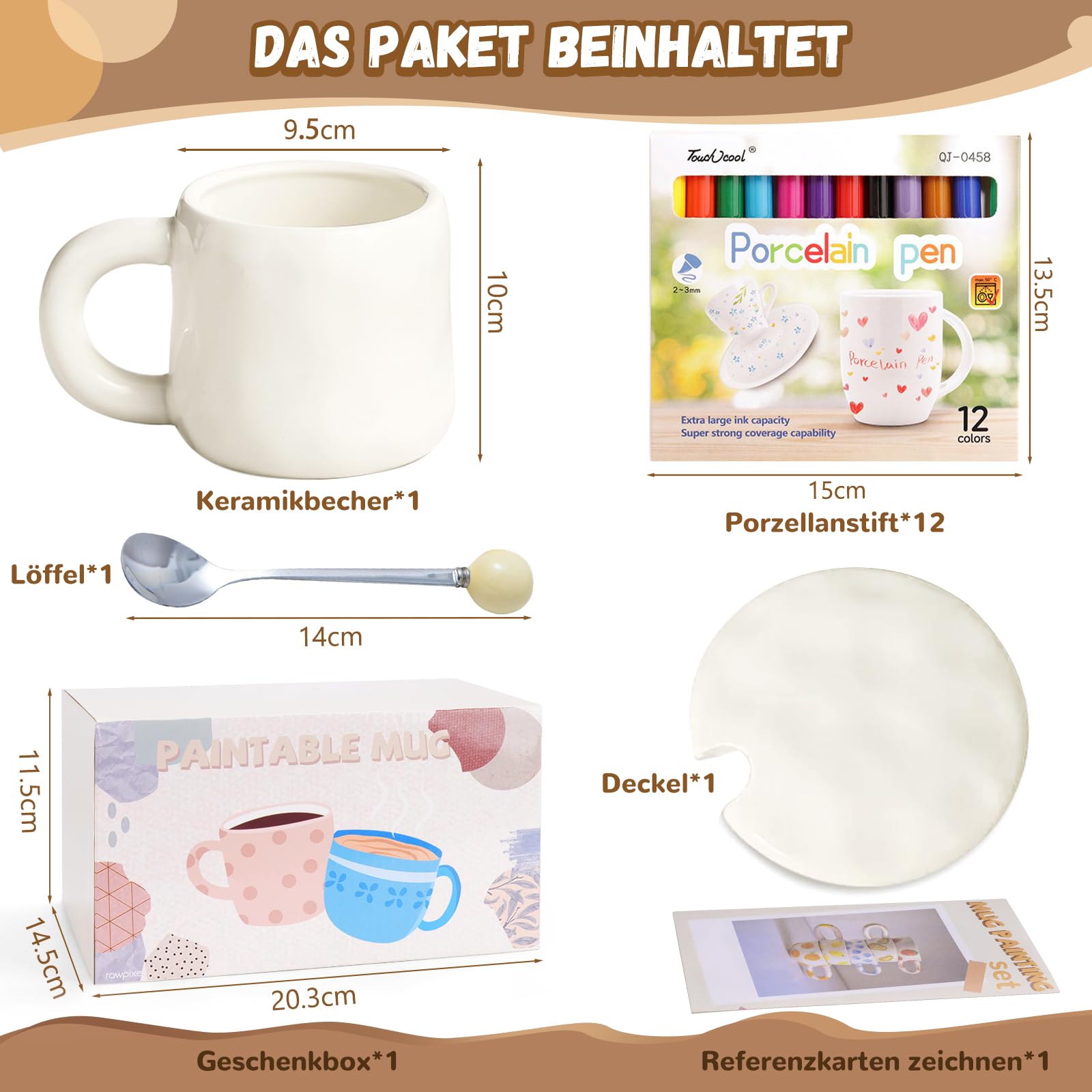 Perfekt für gemütliche Abende alleine, als Date-Idee oder für kreative Stunden mit den Kindern. Das Set fördert die Kreativität und entspannt gleichzeitig. Die bemalten Tassen sind auch super persönliche Geschenke für Geburtstage, Weihnachten oder einfach mal so. Deine Freunde werden begeistert sein!