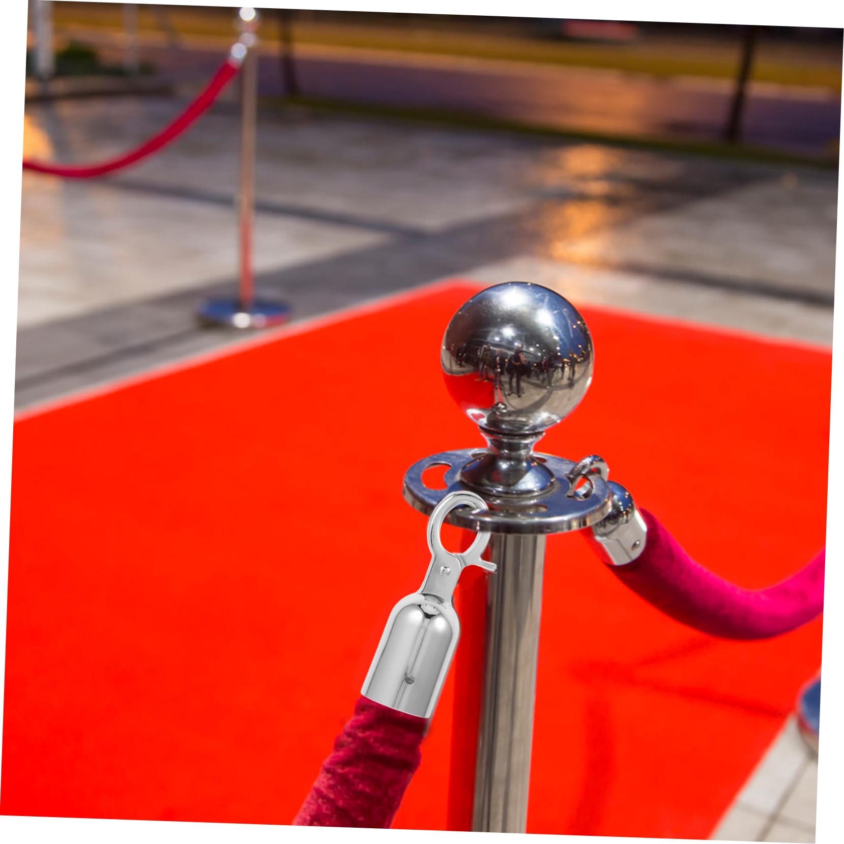 Ordnung muss sein! Mit diesen 12 Seilendstoppern machst du deine Absperrungen sicher und ordentlich. Aus robuster Zinklegierung in silber, je 7,6x2,8x2,8cm groß. Die Karabiner-Verschlüsse sind super einfach zu bedienen - einfach einklicken und fertig! Perfekt für Geländer, Terrassen, Veranstaltungen oder Baustellen. Hält Seile sicher fest, verhindert das Lösen und sieht dabei noch professionell aus. Für innen und außen geeignet. Einfach installieren, sofort sicher!