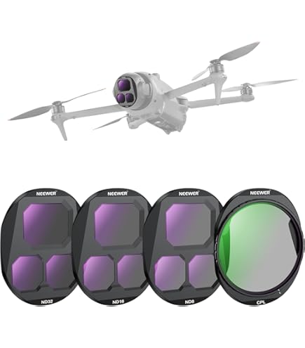 Willst du professionelle Drohnen-Aufnahmen hinbekommen? Dann ist dieses Freewell Filter Set für deine DJI Mavic 4 Pro genau das Richtige! Enthalten sind verschiedene Filter für optimale Leistung bei allen Lichtverhältnissen.\n\nDer ND1000/ND512 Filter reduziert das Licht um 9-10 Blendenstufen - perfekt für Langzeitbelichtungen und sanfte Bewegungsunschärfe, selbst bei hellem Sonnenlicht. Der LPR Filter reduziert Dunst und Lichtverschmutzung für gestochen scharfe, lebendige Aufnahmen in Städten und an Küsten.\n\nDer Glow Mist 1/4 Filter verleiht Highlights einen weichen, filmischen Glanz - ideal für diesen verträumten, professionellen Look. Und der CPL-Filter schneidet lästige Reflexionen von Wasser und Glas, während er Farbsättigung und Kontrast verbessert.\n\nDas Beste: Der CPL-Filter ist vorab ausgerichtet - einfach die weißen Markierungen ausrichten und sofort präzise polarisieren! Mit der Gimbal Safe-Technologie sitzen alle Filter sicher und stabil und schützen deinen Gimbal während des Fluges. Inklusive stylischer Tasche für sicheren Transport. Deine Luftaufnahmen werden nie wieder gleich sein!
