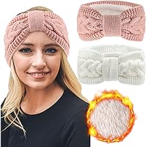 • DRESHOW Damen Stirnband Winter - Gehäkelt Mit Fleecefutter Ohrenwärmer