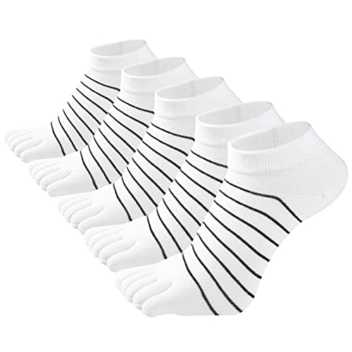 Kennst du das? Normale Socken rutschen immer und sind unbequem? Dann probier mal diese coolen Zehensocken aus! Jeder Zeh hat sein eigenes Fach - wie Handschuhe für die Füße! Aus 80% Baumwolle, super weich und atmungsaktiv. Die 2% Gummi-Anteil sorgen für perfekten Halt ohne zu drücken. Besonders praktisch: Die getrennten Zehen reduzieren Reibung und beugen so Blasen vor - perfekt für lange Wanderungen oder Sport! Auch Fußgeruch wird reduziert, da die Zehen nicht aneinander reiben. Die Socken sind mitteldick - also ideal für jede Jahreszeit. Mit elastischem Bund der nicht einschneidet und nicht rutscht. Im 5er-Pack mit verschiedenen Streifen-Designs - da ist für jeden Tag was anderes dabei! Perfekt fürs Fitnessstudio, Yoga, Wandern oder einfach nur für den Alltag. Einfach anziehen und spüren wie bequem Socken sein können! Deine Füße werden dir danken - versprochen!