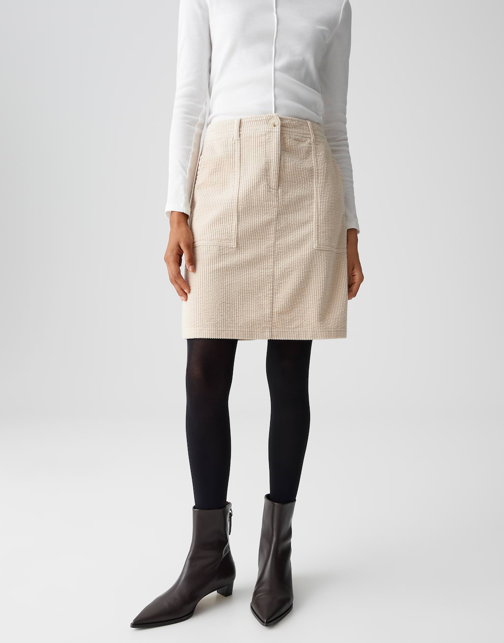 Alter, dieser Cord-Minirock ist ja mal richtig stylisch! Im coolen 70er Jahre Look, aber total modern umgesetzt. Aus 100% BCI Baumwolle - super angenehm zu tragen und nachhaltig noch dazu. Der Breitcord liegt super weich auf der Haut und die eckigen Taschen geben dem Rock diesen besonderen Retro-Charme. Passt einfach zu allem: Ob zum Shirt für tagsüber oder mit Bluse für den Büro-Look. Die normale Passform sitzt einfach perfekt - nicht zu eng, nicht zu weit. Ein richtiger Basic, den du immer wieder anziehen kannst. OPUS steht ja für nachhaltige Mode, die trotzdem total stylisch ist. Egal ob im Café, im Office oder beim Shoppen - mit diesem Rock machst du immer eine gute Figur! Und das Beste: Der Cord ist ungefüttert, also nicht zu warm im Sommer. Einfach ein Must-Have für jede Garderobe, die was hermacht!