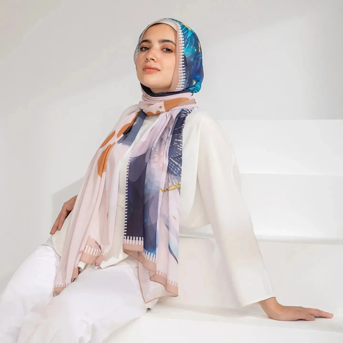 Mit seinen Maßen von 176x68cm ist er groß genug für alle möglichen Styling-Ideen - ob als eleganter Hijab, lässiges Halstuch oder romantisches Schultertuch. Der arabisch inspirierte Druck verleiht dir sofort dieses besondere Etwas.