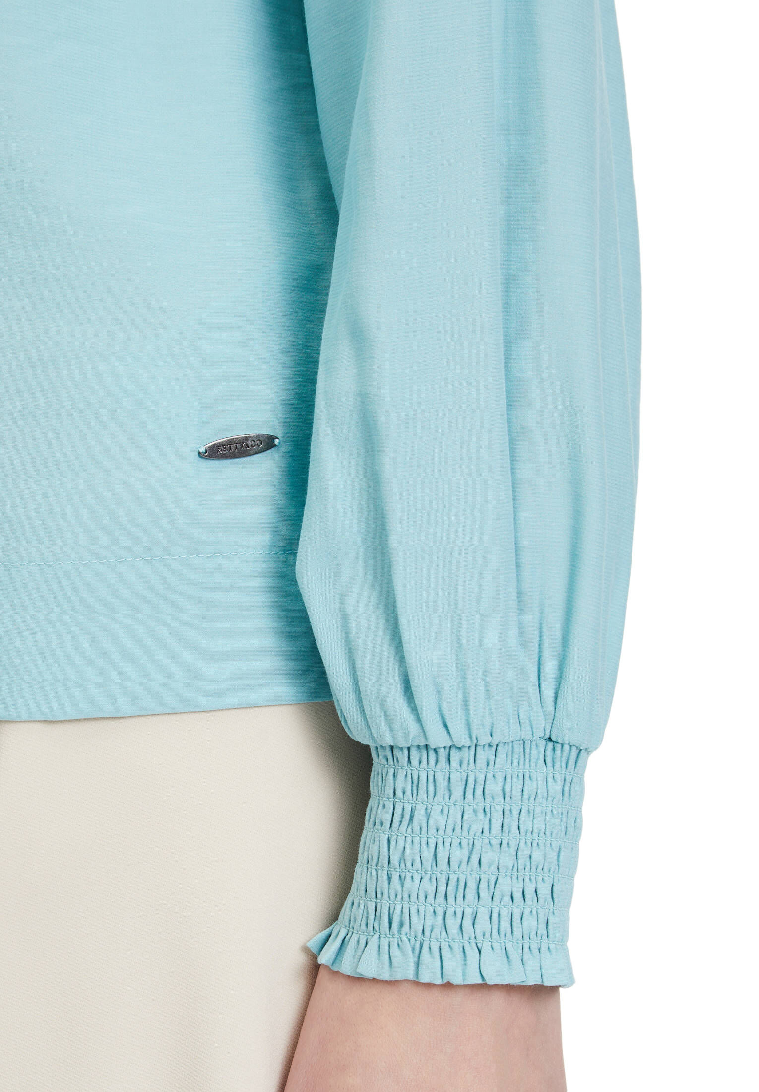 Der klassische Rundhals-Ausschnitt ist zeitlos und passt zu allem. Die raffinierten Ärmel mit der Raffung geben dem Shirt diesen besonderen Look, der es von normalen Blasen abhebt.