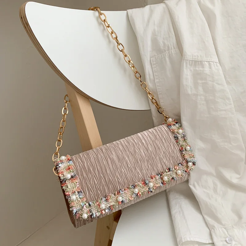 Absolute Eyecatcher für besondere Anlässe! Diese elegante Clutch-Tasche aus hochwertigem Satin bezaubert mit 3D-Blumen und Perlen-Dekor. Mit zwei abnehmbaren Metallketten - tragbar als Clutch, Umhängetasche oder Schultertasche. Genug Platz für Handy, Geldbörse und Kosmetik. Perfekt für Hochzeiten, Abendpartys, Bälle oder Cocktail-Events. In verschiedenen Farben erhältlich - das perfekte Accessoire für den großen Auftritt!