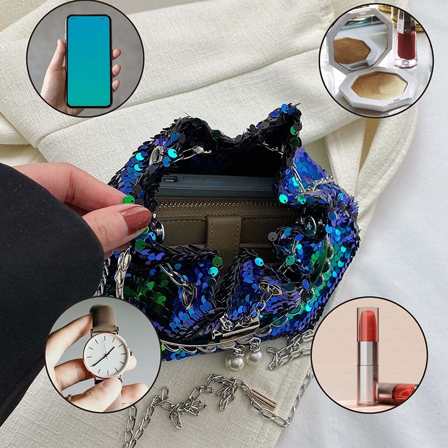Wow, diese Clutch ist der absolute Hingucker! Perfekt für alle besonderen Anlässe - ob Hochzeit, Party oder romantisches Dinner. Das glitzernde Envelope-Design mit den eleganten Falten lässt dich wie einen Star erstrahlen. Aus hochwertigem Polyester gefertigt, der sich super luxuriös anfühlt und dabei langlebig ist. In der 20x10x5cm großen Tasche findest du Platz für Handy, Lippenstift, Schlüssel und Karten. Das Beste: Die Kette ist abnehmbar! So kannst du sie als klassische Handtasche, elegante Umhängetasche oder coole Crossbody-Tasche tragen. Ein mega Geschenk für modebewusste Frauen - ob zum Valentinstag, Muttertag oder Geburtstag. Mit dieser Clutch wirst du definitiv zum Blickfang auf jeder Party!