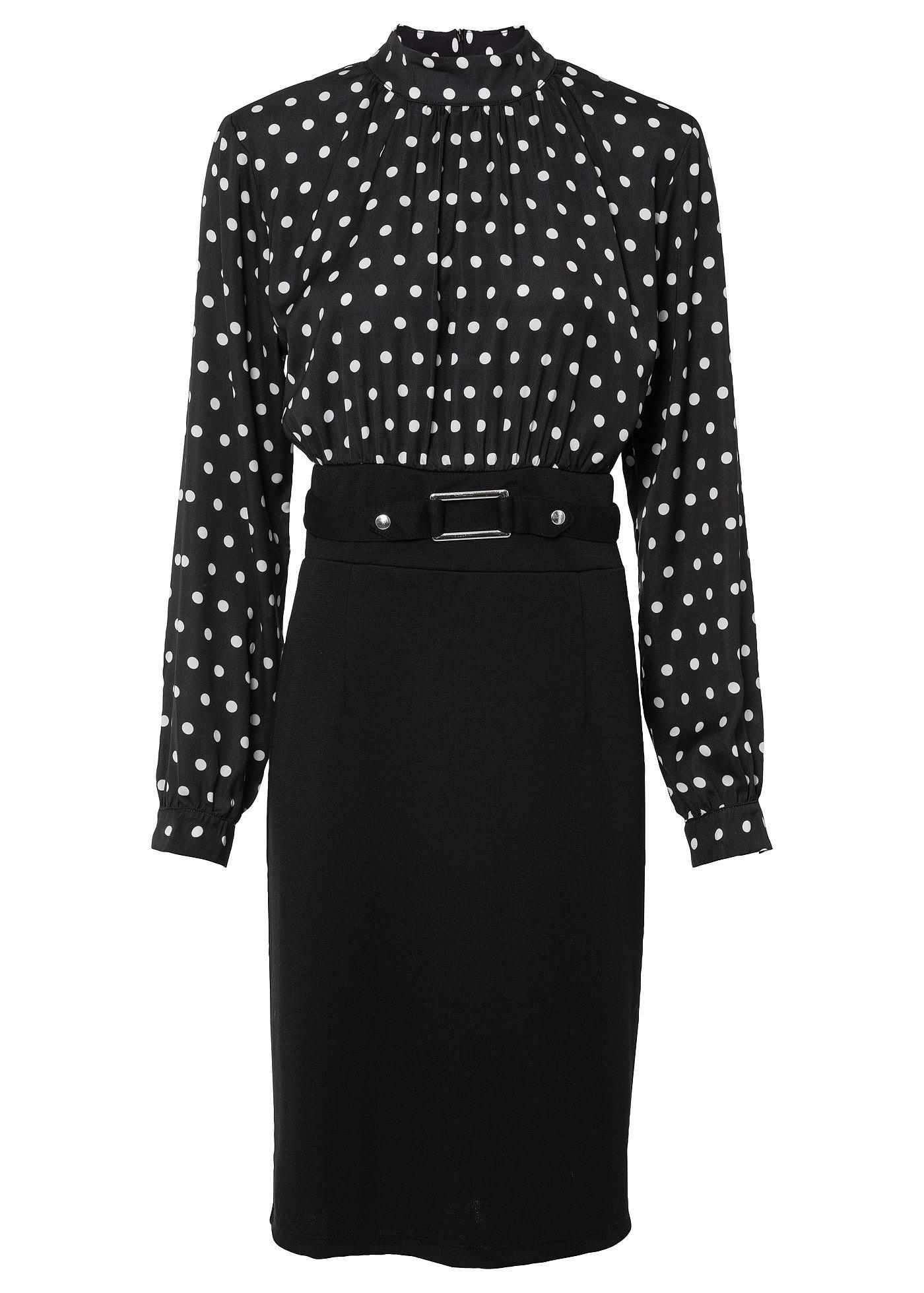 Wow, dieses Retro-Kleid ist ja mal der absolute Hingucker! Im Rockabilly-Stil mit Godet-Stegen und schwarzen Pünktchen auf rotem Grund sieht es einfach nur kultig aus.