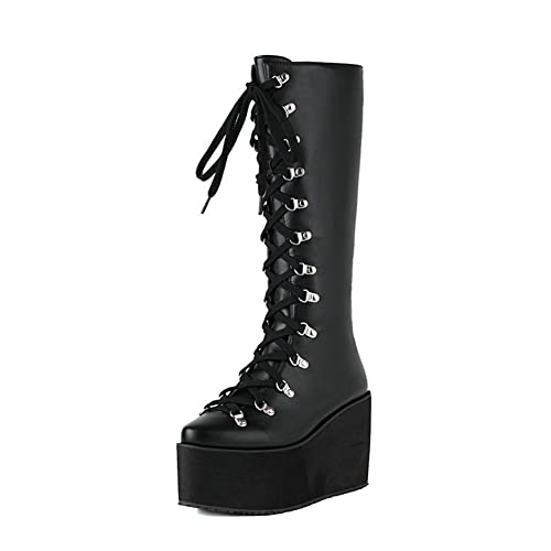 • Coolcustomize Rosa Kampfstiefel Damen - Gothic Emo Style Mit Totenkopf-Motiv - Plateau Booties