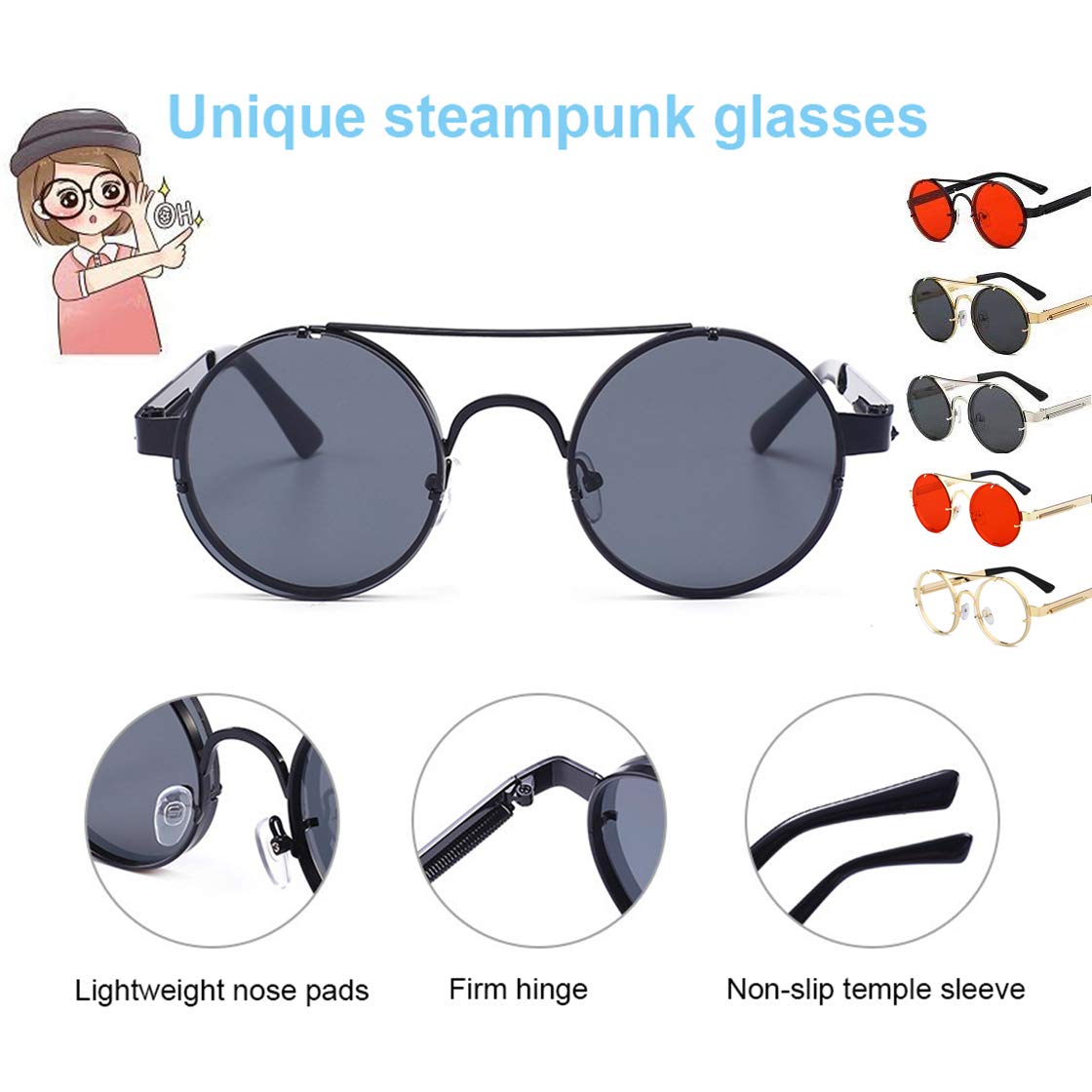 Style mit industriellem Flair! Diese Steampunk Sonnenbrille von qinqilanqi-S vereint Retro-Design mit modernster Technik. Das metallische Rahmen-Design mit Zahnrad-Akzenten erinnert an das viktorianische Zeitalter und verleiht dir einen absolut einzigartigen Look. Die innovativen Federbügel sorgen für vibrationsarmen Halt selbst bei Bewegung. Die verstellbaren Silikon-Nasenpads verhindern Rutschen und bieten maximalen Komfort. Mit 100% UV400 Schutz sind deine Augen optimal vor schädlichen Strahlen geschützt. Erhältlich in verschiedenen coolen Farbkombinationen wie Kupfer/Braun, Silber/Blau oder Schwarz/Gold. Perfekt für Konzerte, Cosplay, Alltag oder einfach nur um aus der Masse herauszustechen. Im Lieferumfang ist ein hochwertiges Reinigungstuch und ein Mikrofaser-Beutel enthalten. Habe sie für ein Steampunk-Event gekauft und war der Star des Abends! Die Qualität ist super, die Gläser sind kratzfest und die Brille sitzt angenehm. Einfach ein cooles Accessoire für alle die Individualität lieben!