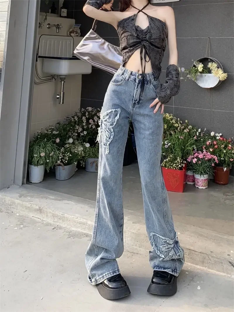 CHOUBAGUAI Y2K Baggy Jeans Damen - High Waist Lässiger Streetstyle