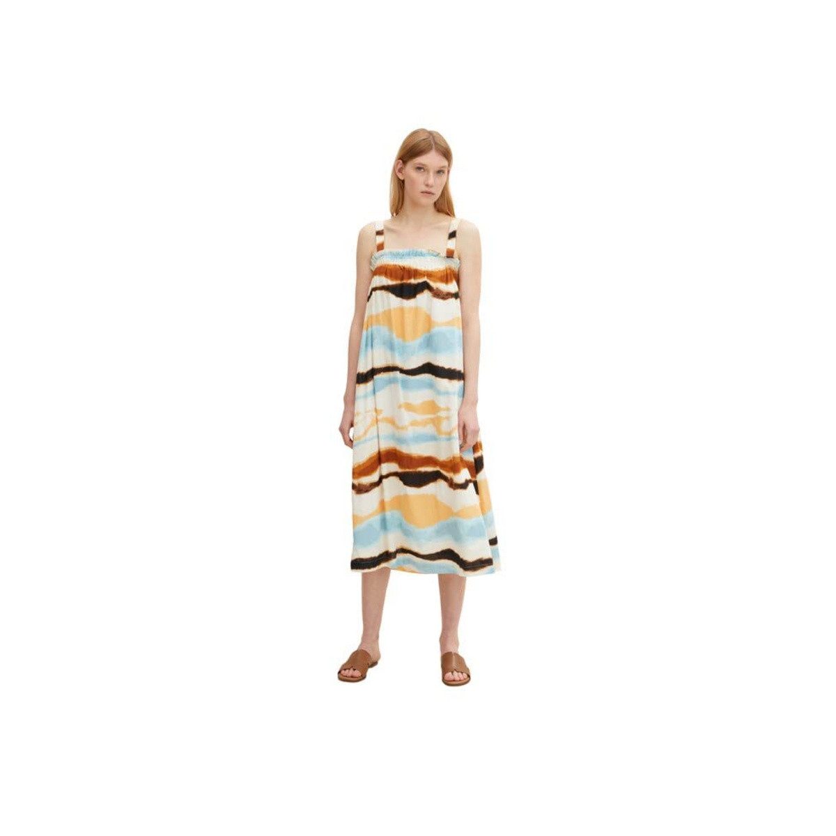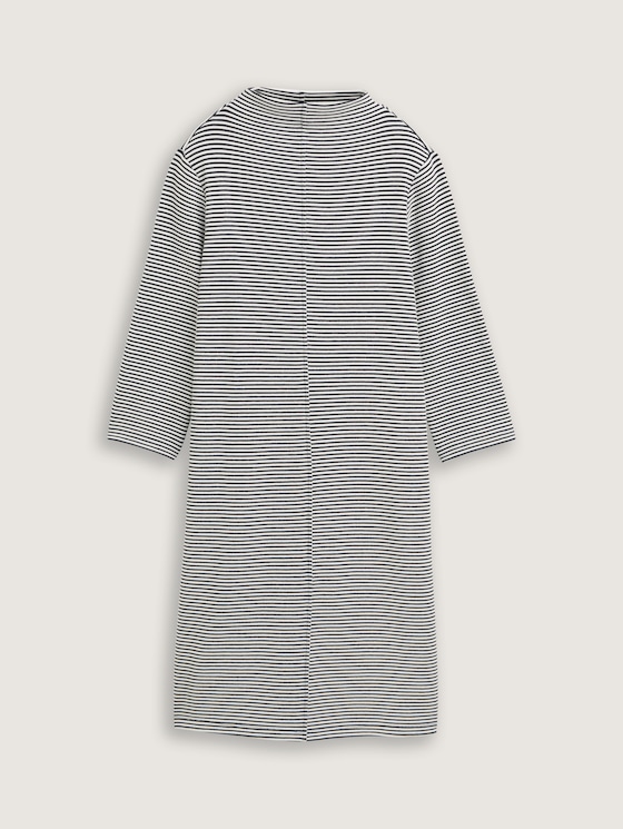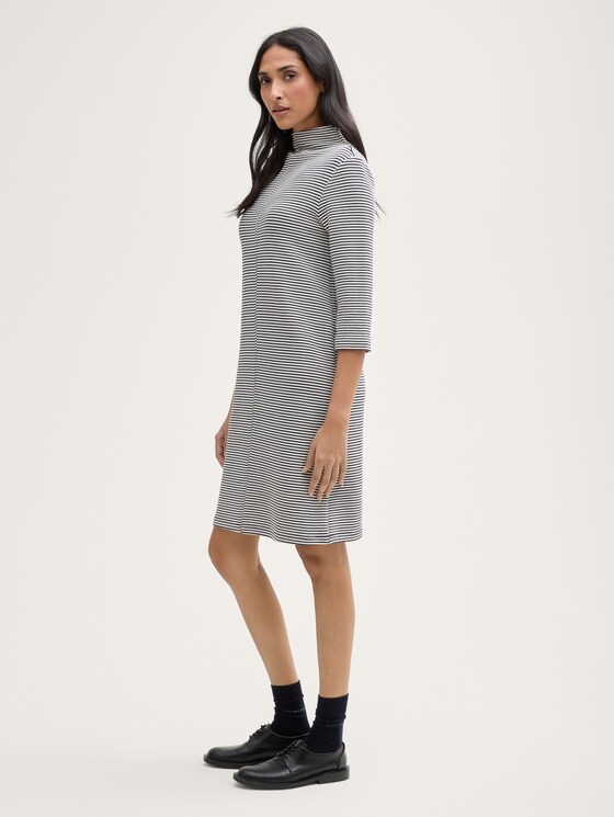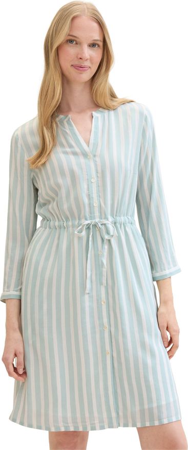 Elegantes Streifenkleid von TOM TAILOR mit praktischem Bindegürtel! Das Regular Fit Kleid in knielanger Länge (ca. 100cm bei Größe 38) verfügt über einen dezenten V-Ausschnitt und modische 3/4-Ärmel. Aus leichtem, pflegeleichtem Dobby-Gewebe gefertigt, das kaum knittern kann. Perfekt für verschiedene Anlässe - ob im Büro, bei Feiern, Hochzeiten oder in der Freizeit. Der Bindegürtel betont die Taille und sorgt für eine schmeichelhafte Silhouette. Ein zeitloses Stück, das sich vielseitig kombinieren lässt und in jeder Damengarderobe nicht fehlen sollte. Schonwaschgang bei 30°C - praktisch und langlebig!