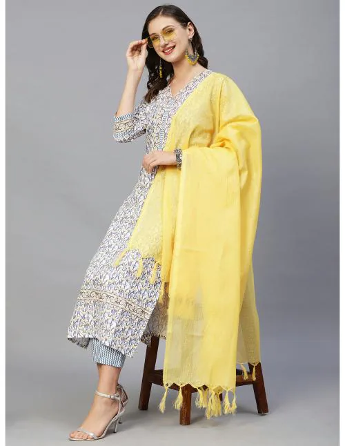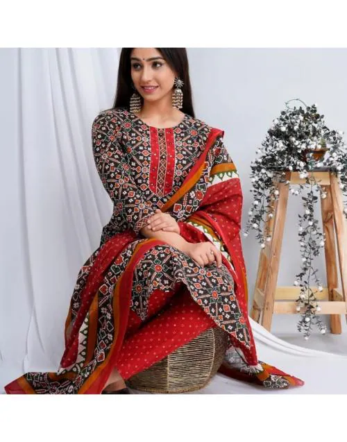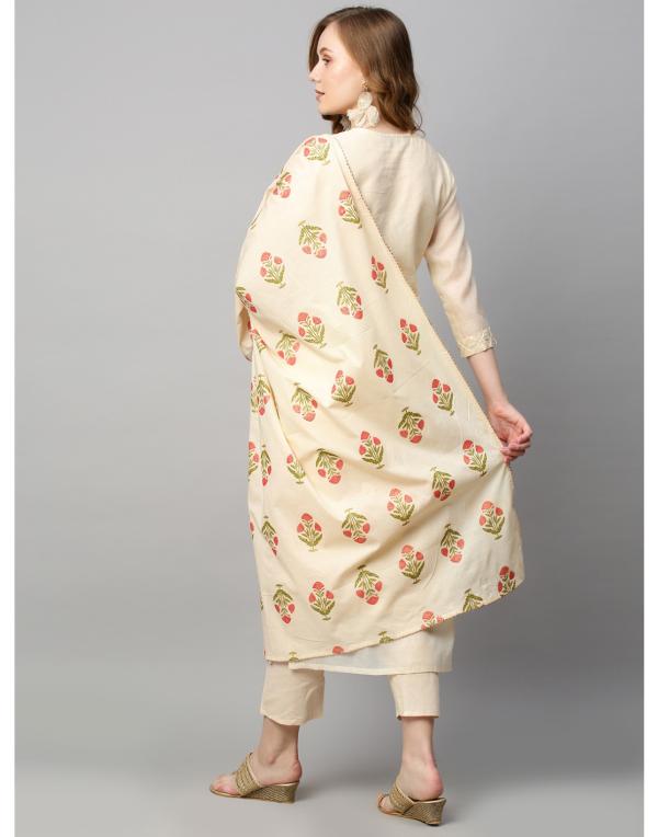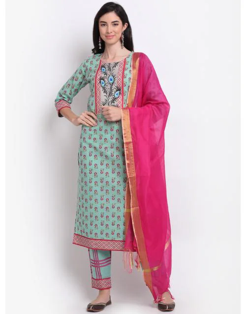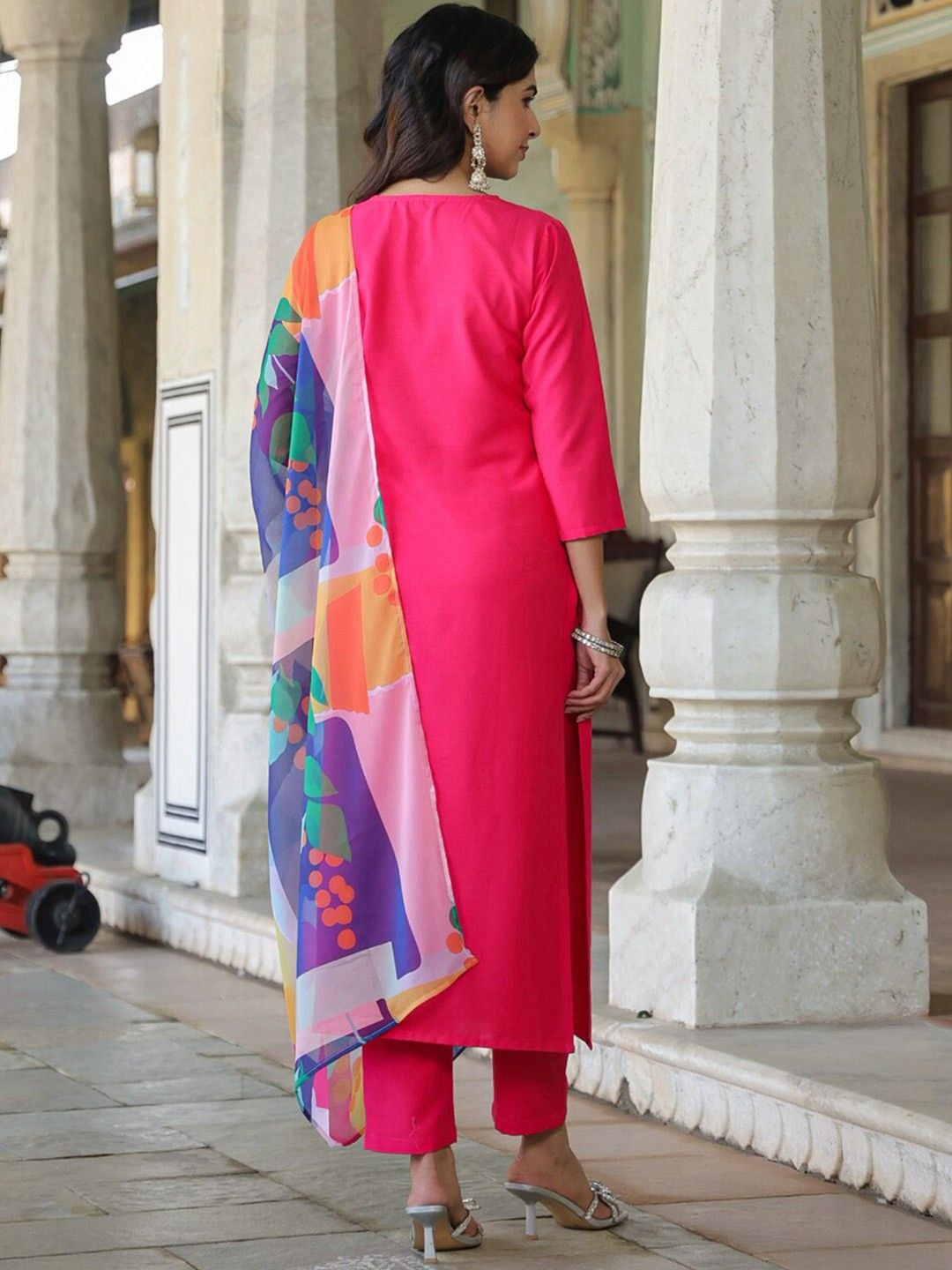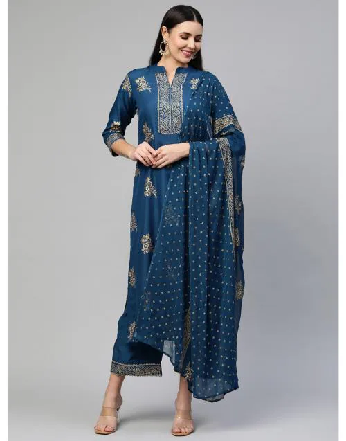 Das Set kommt komplett mit Kurta, Hose und Dupatta - also alles, was du für einen traditionellen Look brauchst. Der gerade Schnitt und die Wadenlänge sind super schmeichelhaft, und die 3/4-Ärmel geben dem Outfit eine besondere Note.