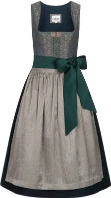 Oktoberfest-Feeling pur! Dieses wunderschöne Dirndl-Set in elegantem Blau-Grau besteht aus Kleid, Spitzenbluse und Schürze. Traditionelles Design mit modernem Touch.