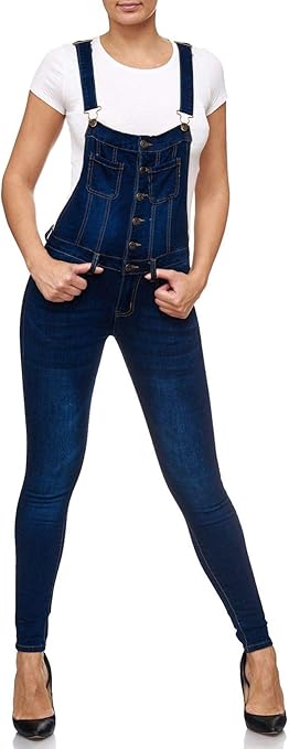 OSAB Damen Latzhose - Slimfit Denim Latzjeans Mit Verstellbaren Trägern