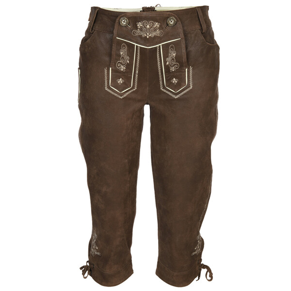 Tradition mit Style! Diese Maddox 'Verena' Lederhose für Damen aus weichem Ziegenleder in Antik Eiche ist der Hingucker auf jedem Volksfest. Mit abnehmbarem Latz, verstellbarem Bund und den charakteristischen schwarzen Blumenstickereien vereint sie authentischen Trachtencharme mit modernem Komfort. Die Gummizug-Hosenträger lassen sich abnehmen für verschiedene Looks. Perfekt für Oktoberfest, Kirchweih oder andere festliche Anlässe. Kombiniere sie mit Trachtenbluse oder T-Shirt - diese Lederhose macht jede Frau zur festlichen Erscheinung!